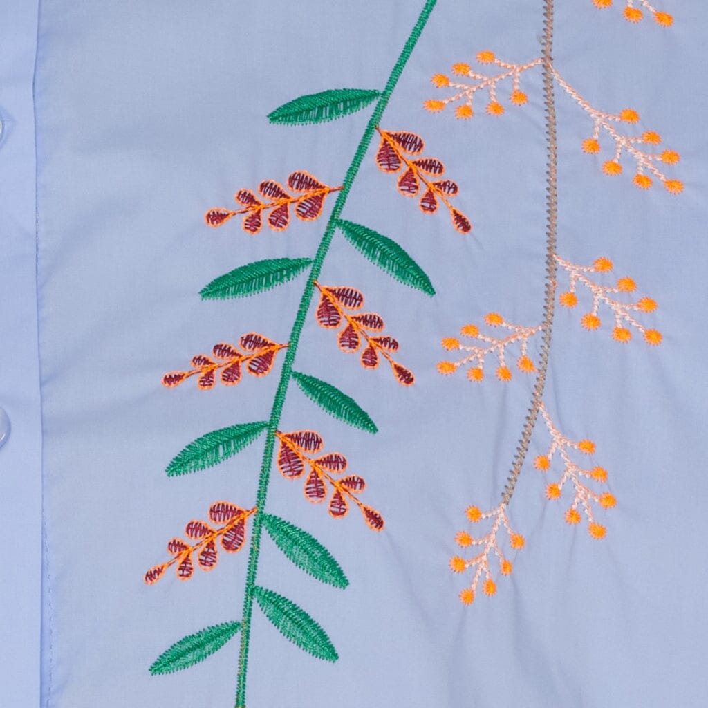 Ljusblå skjorta från Marta Du Chateau, tillverkad av 100 % bomull. Skjortan har blombroderi på framsidan och en lös passform.