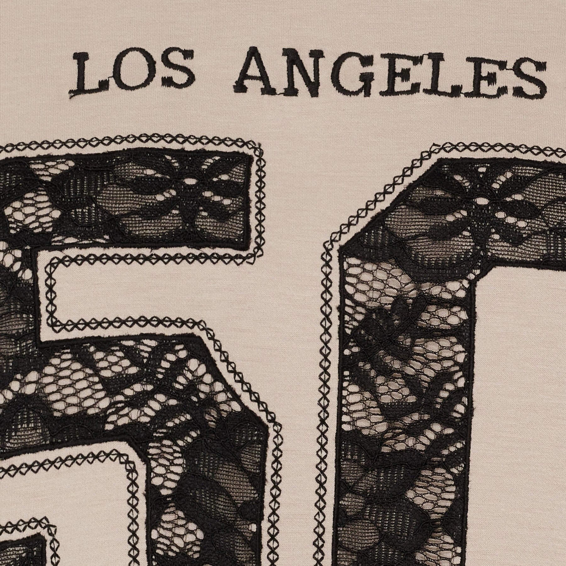 Beige sweatshirt från Marta Du Chateau med tryck och spetsdetaljer. Sweatshirten har ett stort 50-tal på framsidan med texten LOS ANGELES och Champions skrivet nedanför.
