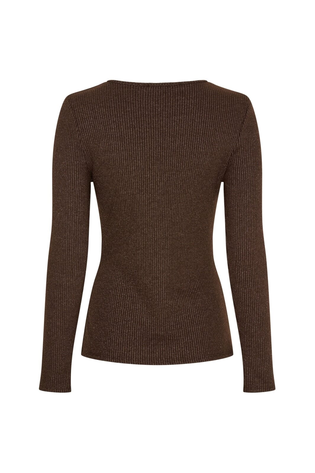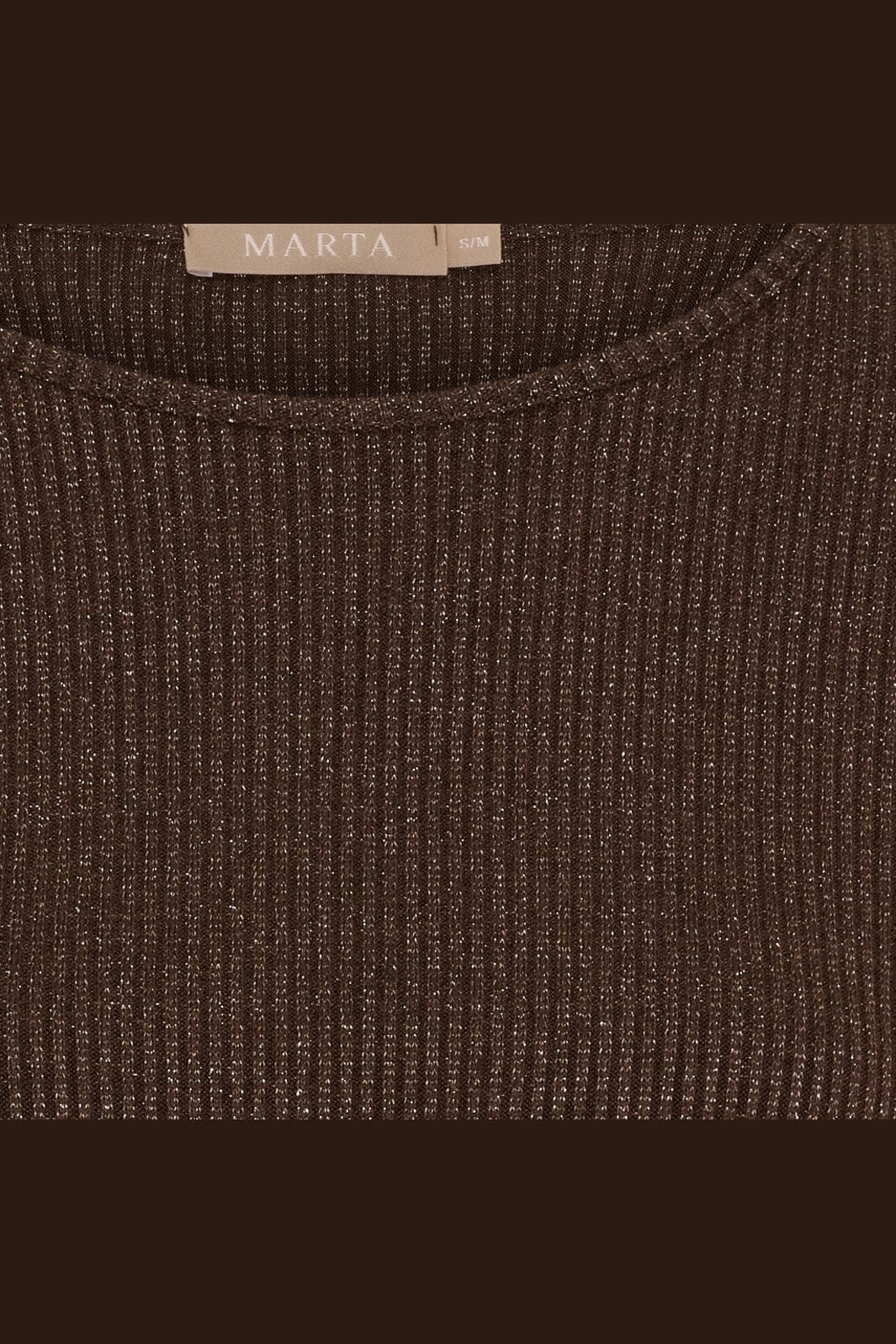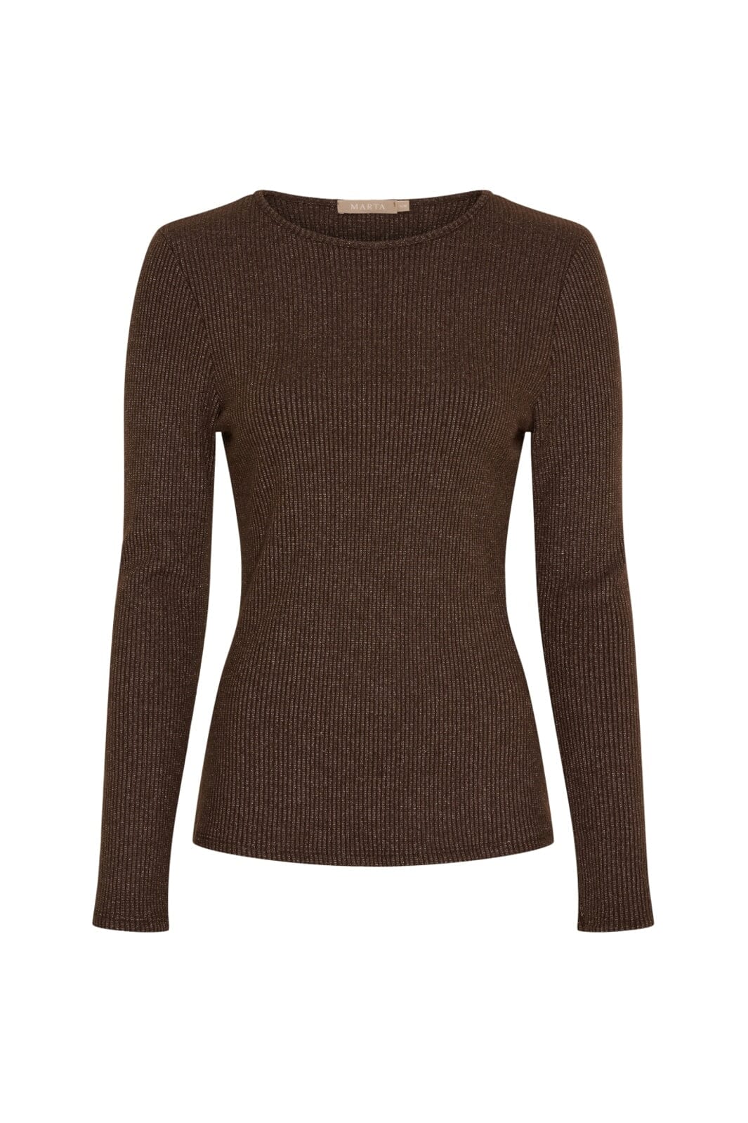 Brun långärmad topp från Marta Du Chateau med ribbstickad textur. Toppen har en åtsittande passform och en rund halsringning.