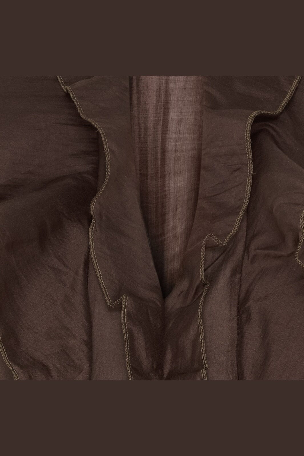 Brun skjorta från Marta Du Chateau med volangdetaljer längs V-ringningen. Skjortan har långa ärmar och dekorativa sömmar som ger ett feminint uttryck.