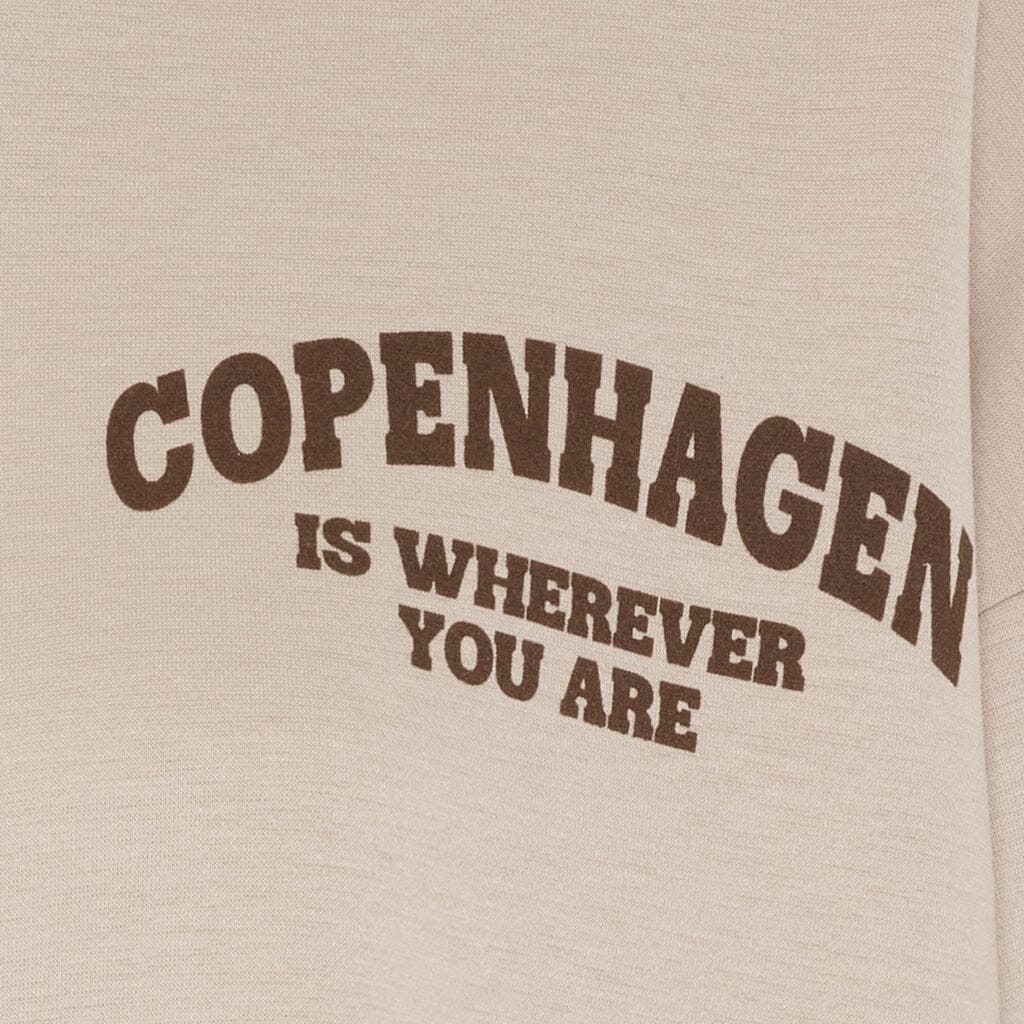 En beige kofta från Marta Du Chateau med mörkbrun text. Koftan passar både till vardag, träning och hemma.