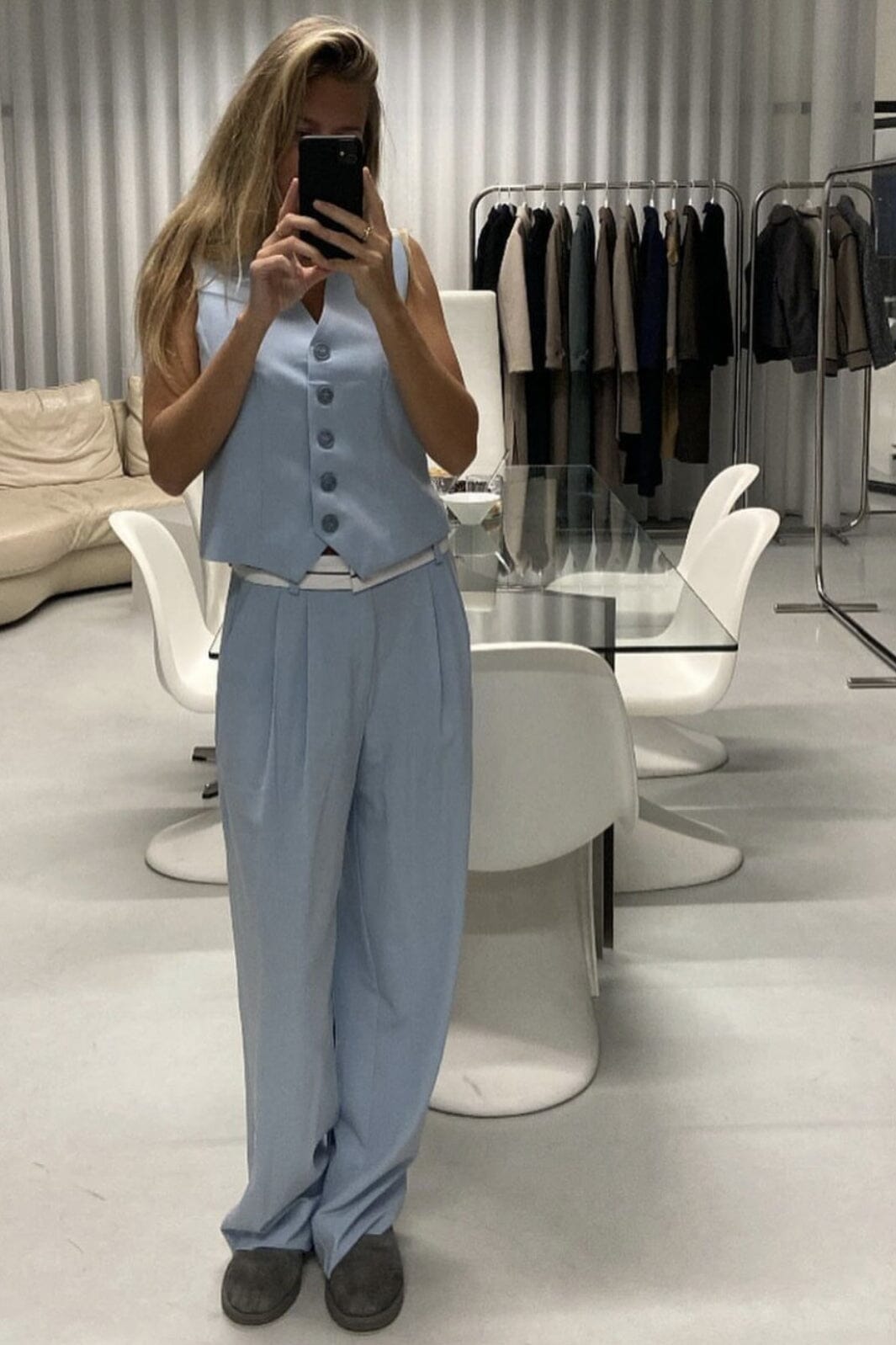 Akari-M byxorna från MbyM presenterar sig i en utsökt ljusblå nyans som ger en fräsch fläkt till garderoben.