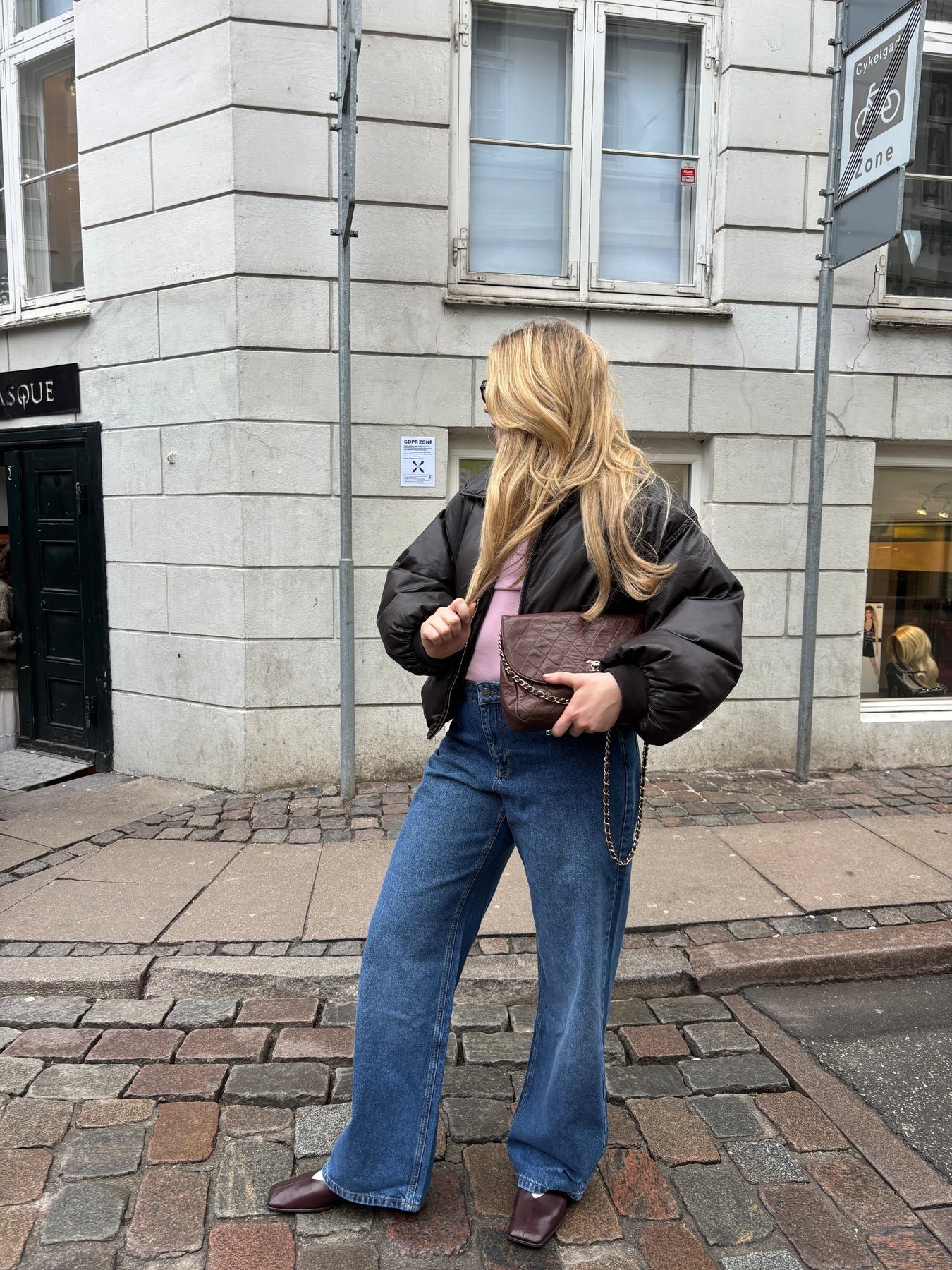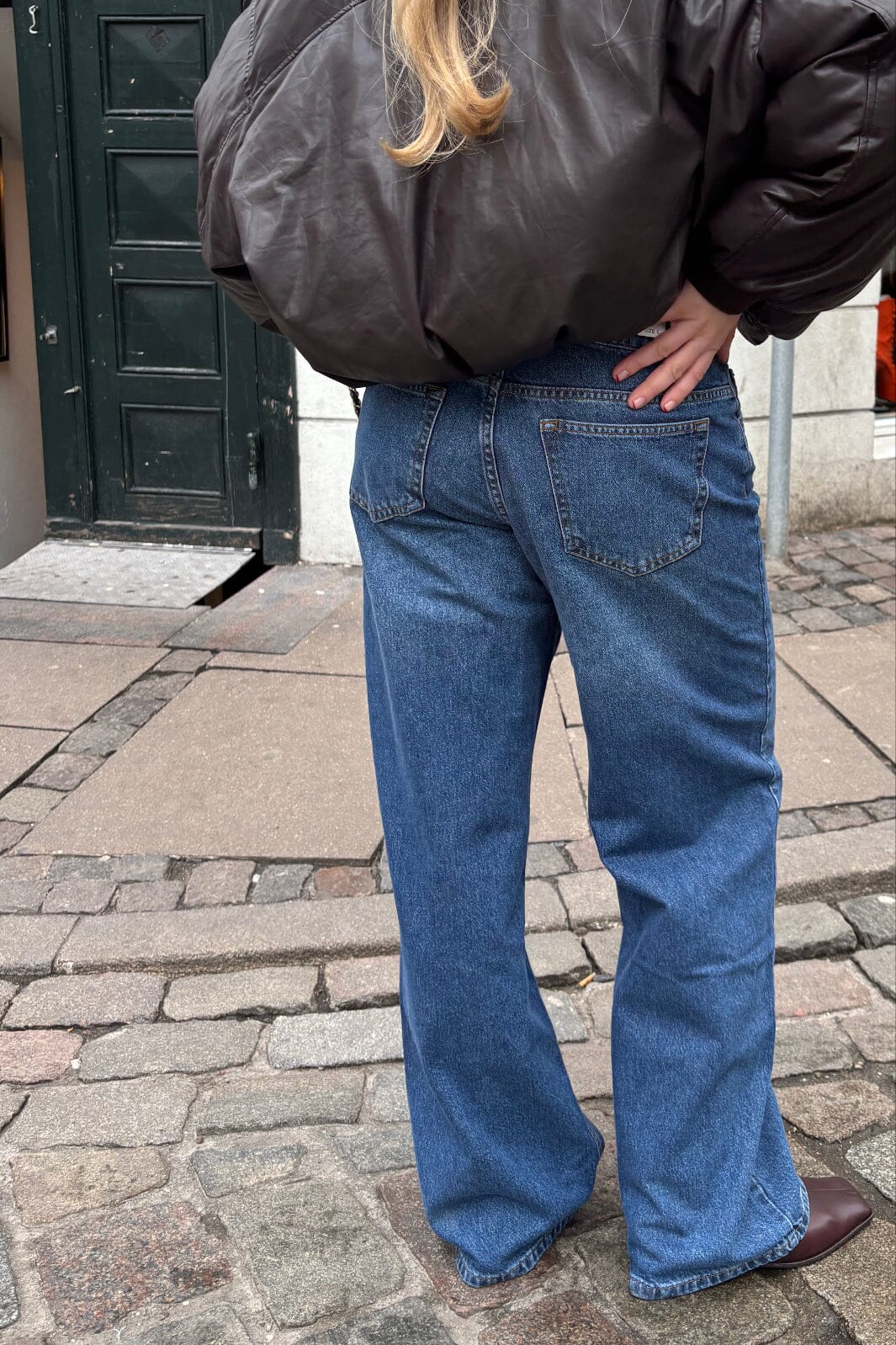 Jeans från MbyM i en vintageblå tvätt. Jeansen har hög midja och en lös passform.