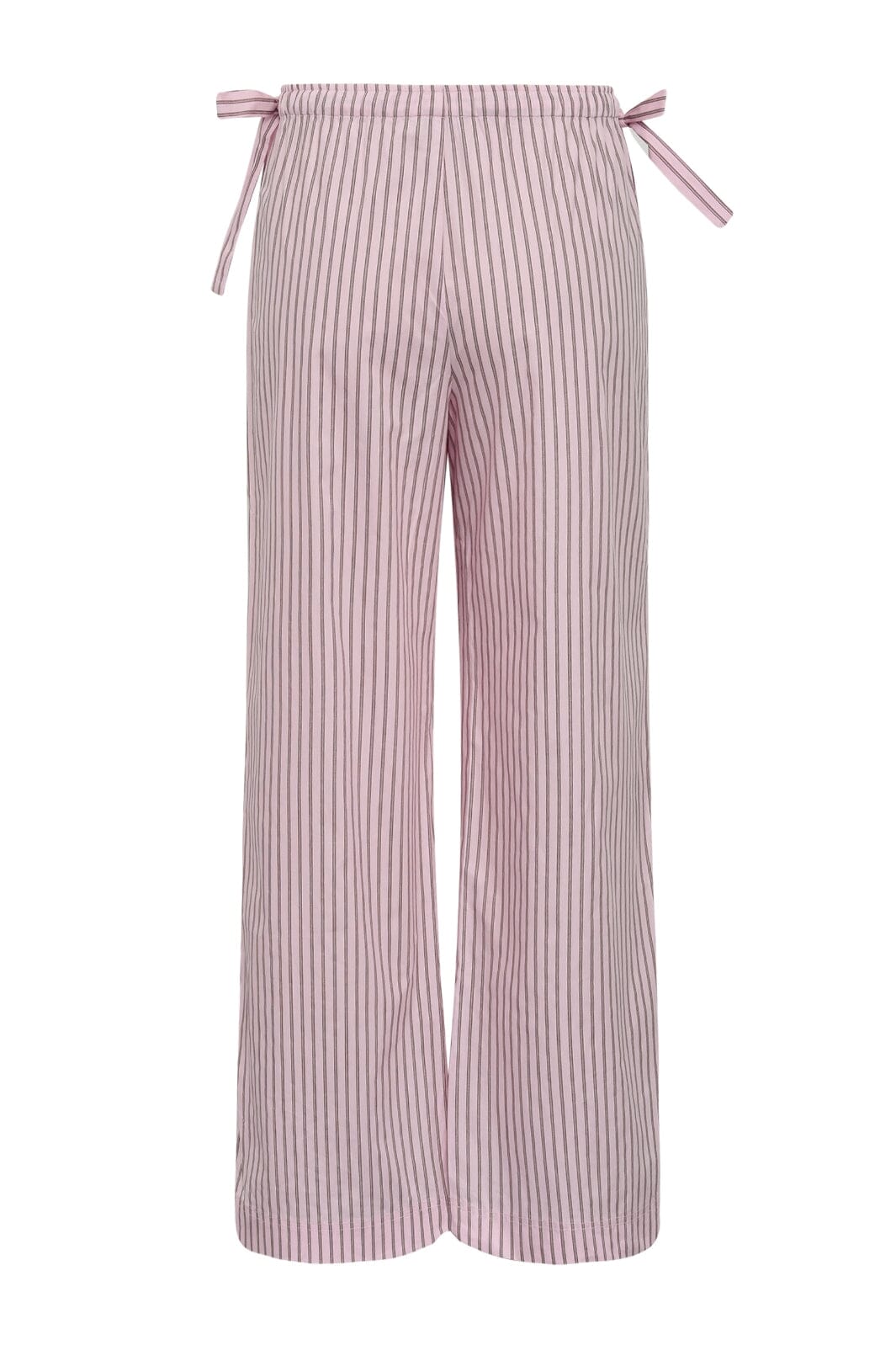 Randiga byxor från MbyM i en ljusrosa nyans med hög midja. Byxorna har vertikala ränder och rosettdetaljer på sidorna samt en golvlång längd.
