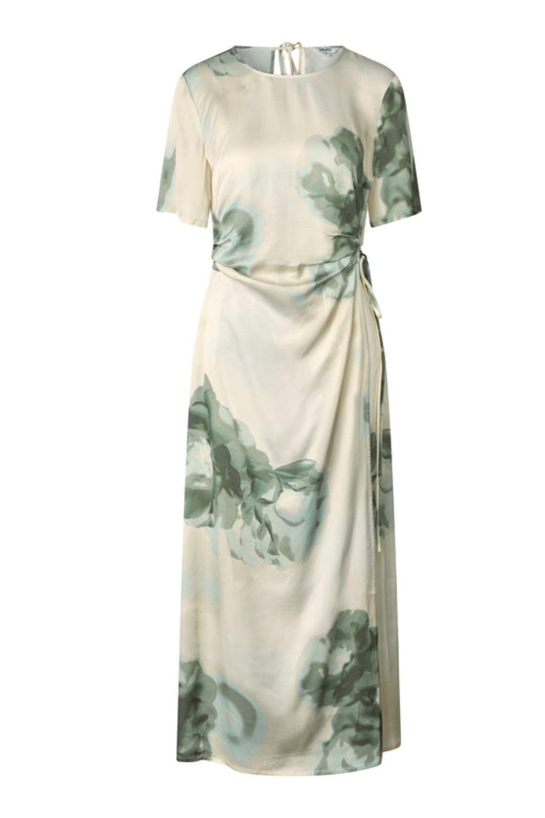 Klänning från MbyM, tillverkad av 100 % viskos med ett blommigt mönster i nyanser av cream, vitt och grönt.