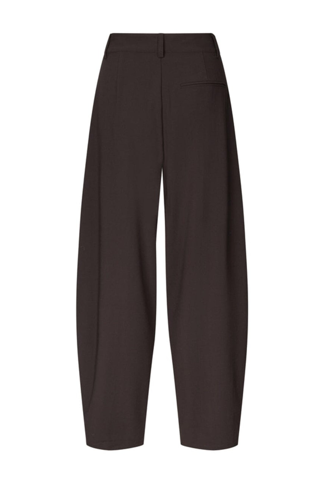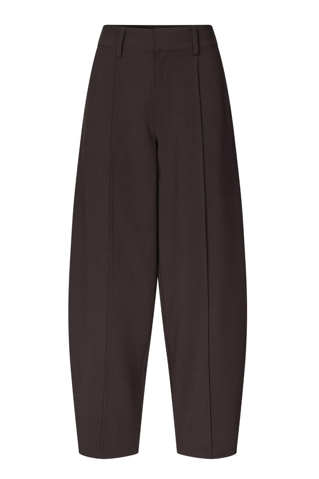 Mörkbruna byxor från MbyM med hög midja och vida ben. Byxorna har en lös passform och går ner till anklarna.