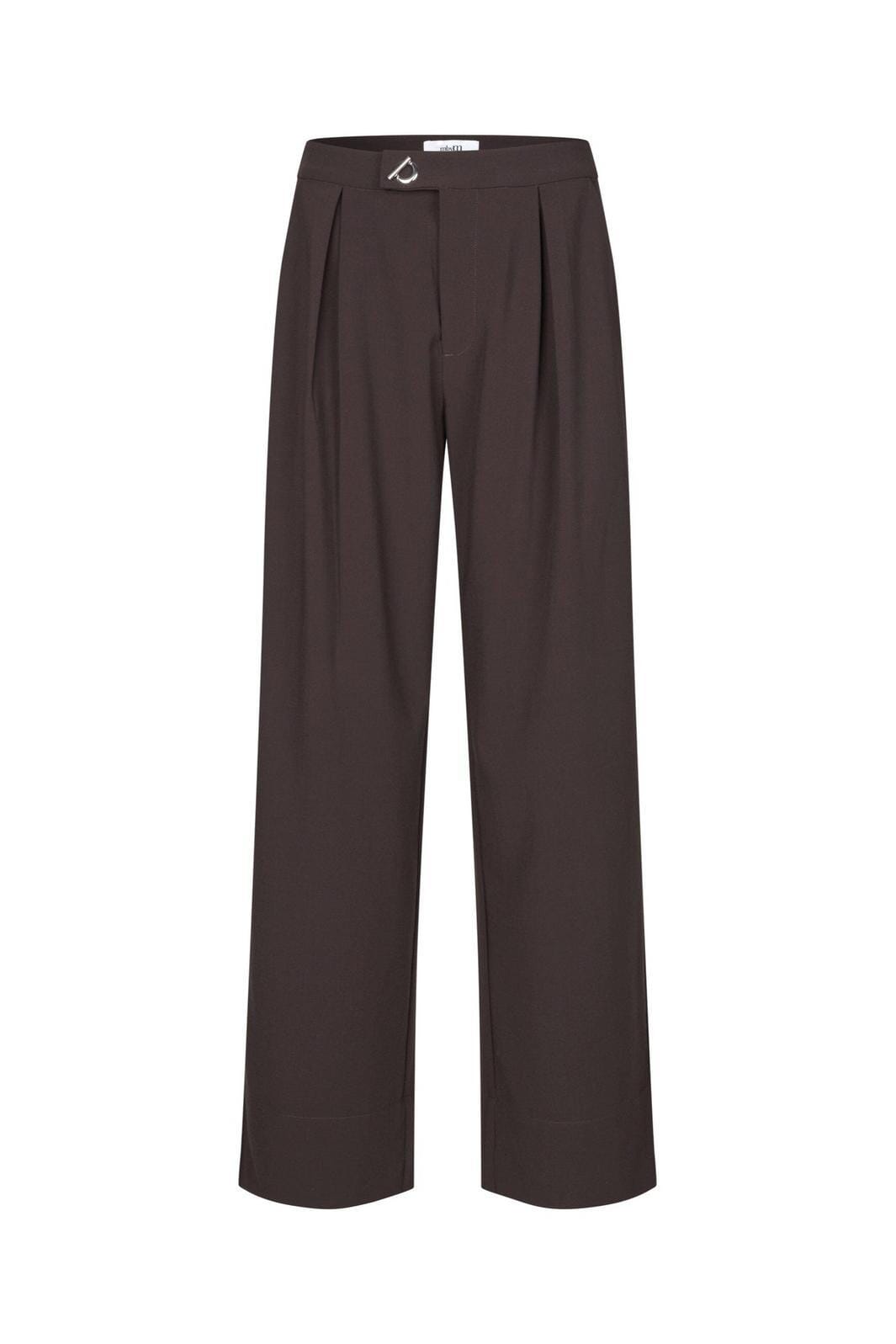 Bruna byxor från MbyM med breda ben. Byxorna har hög midja och golvlängd, och de passar både till avslappnade och formella tillfällen.
