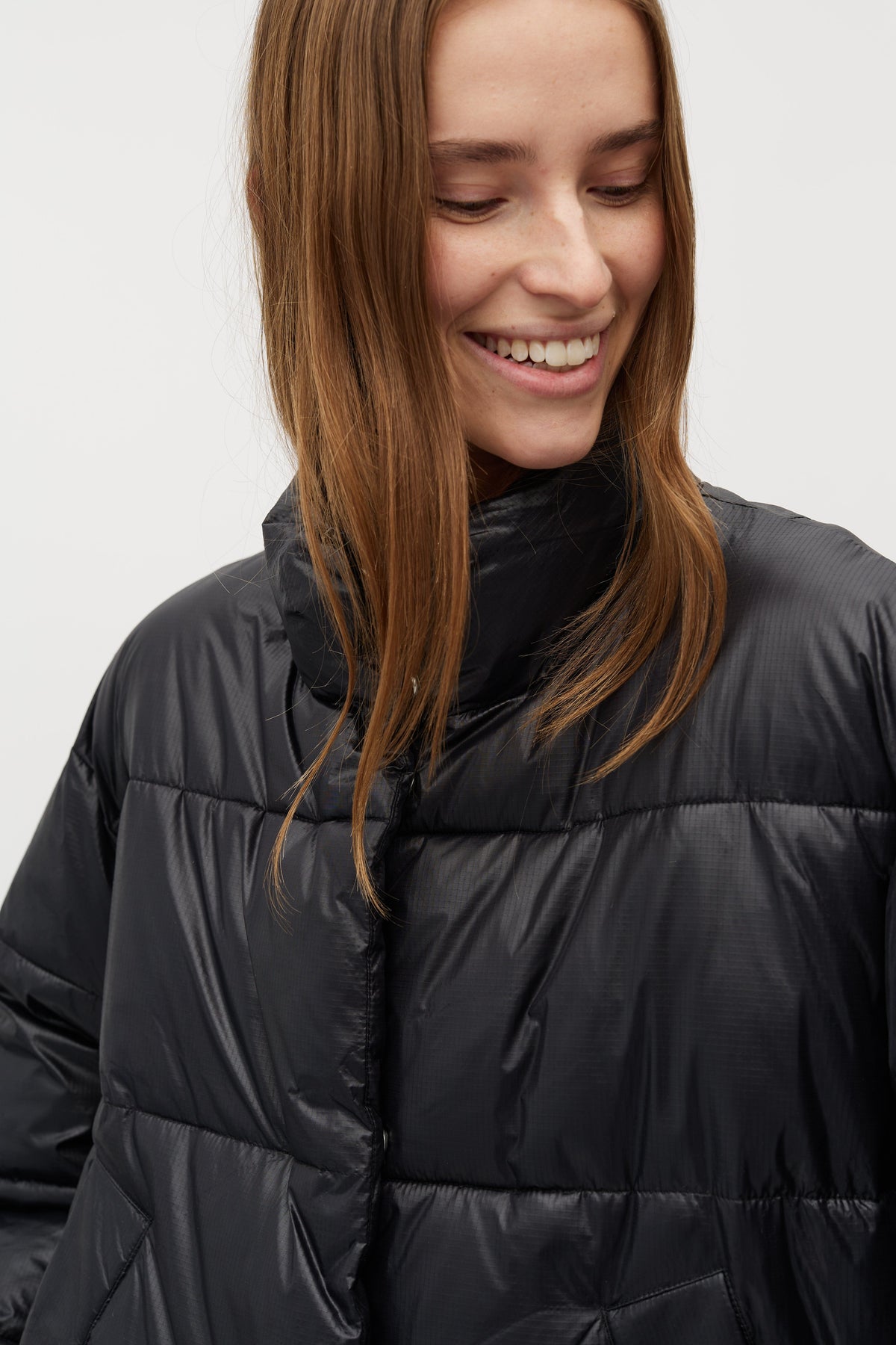 Quiltad jacka från MbyM i svart. Jackan har en hög krage och en quiltad design med kort längd.