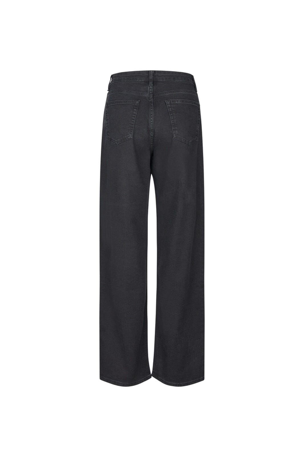 Svarta byxor från MbyM, tillverkade av bomull med en liten andel elastan. Byxorna har en lös passform och långa ben.
