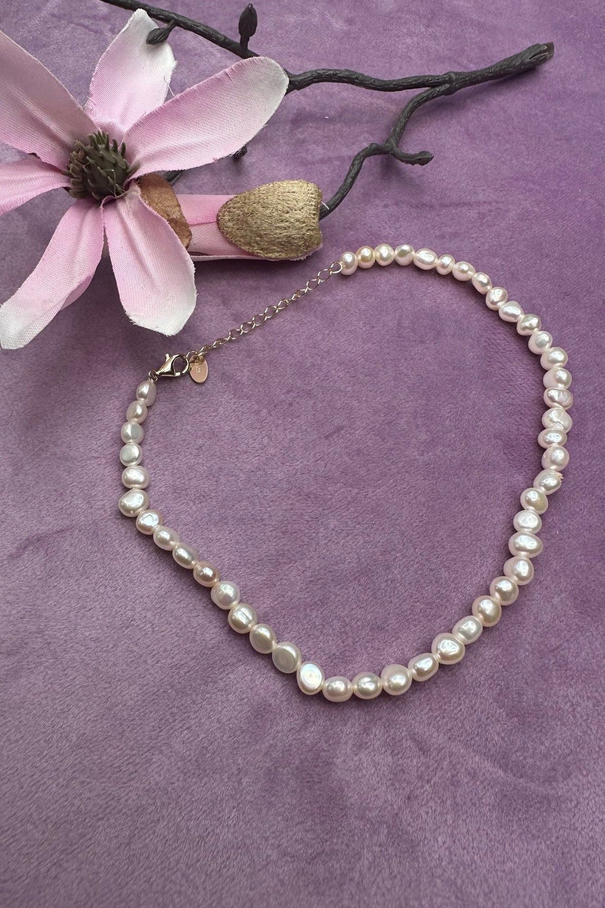 925silver anklet with baroque pearl 23+5cm