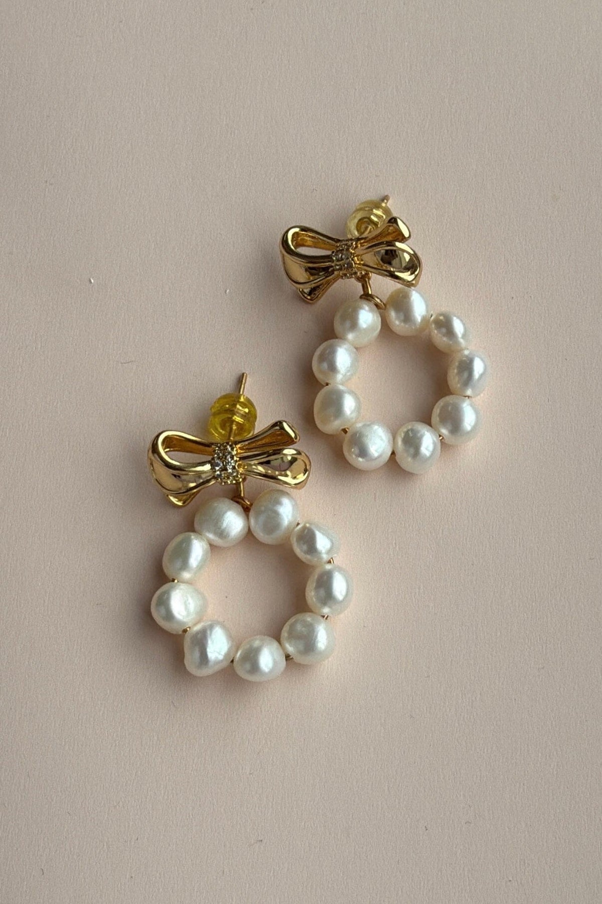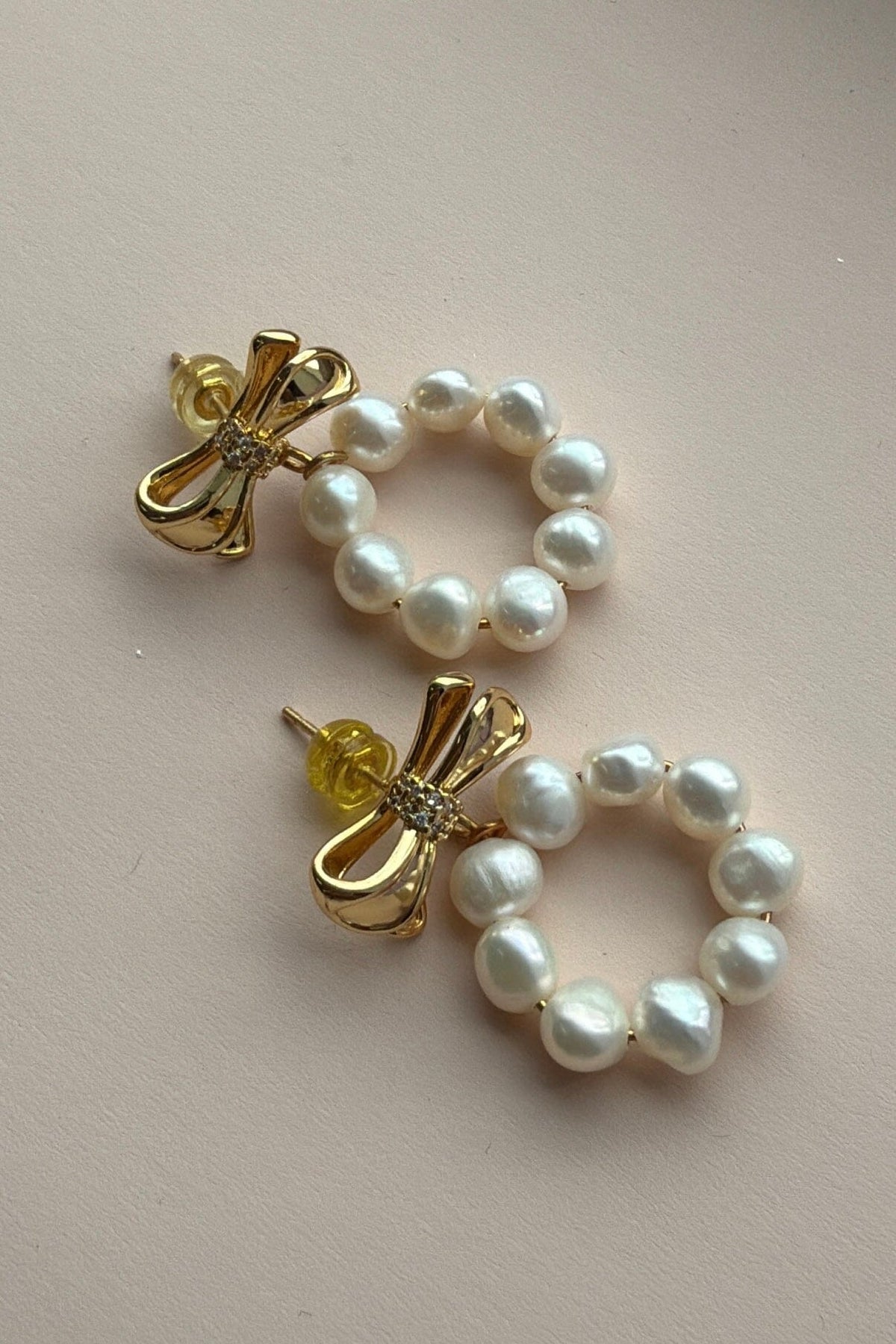 Guldpläterade creolörhängen från Mellow Moon i rostfritt stål med bågform. Örhängena har små vita pärlor och en lätt vikt som gör dem bekväma att bära.