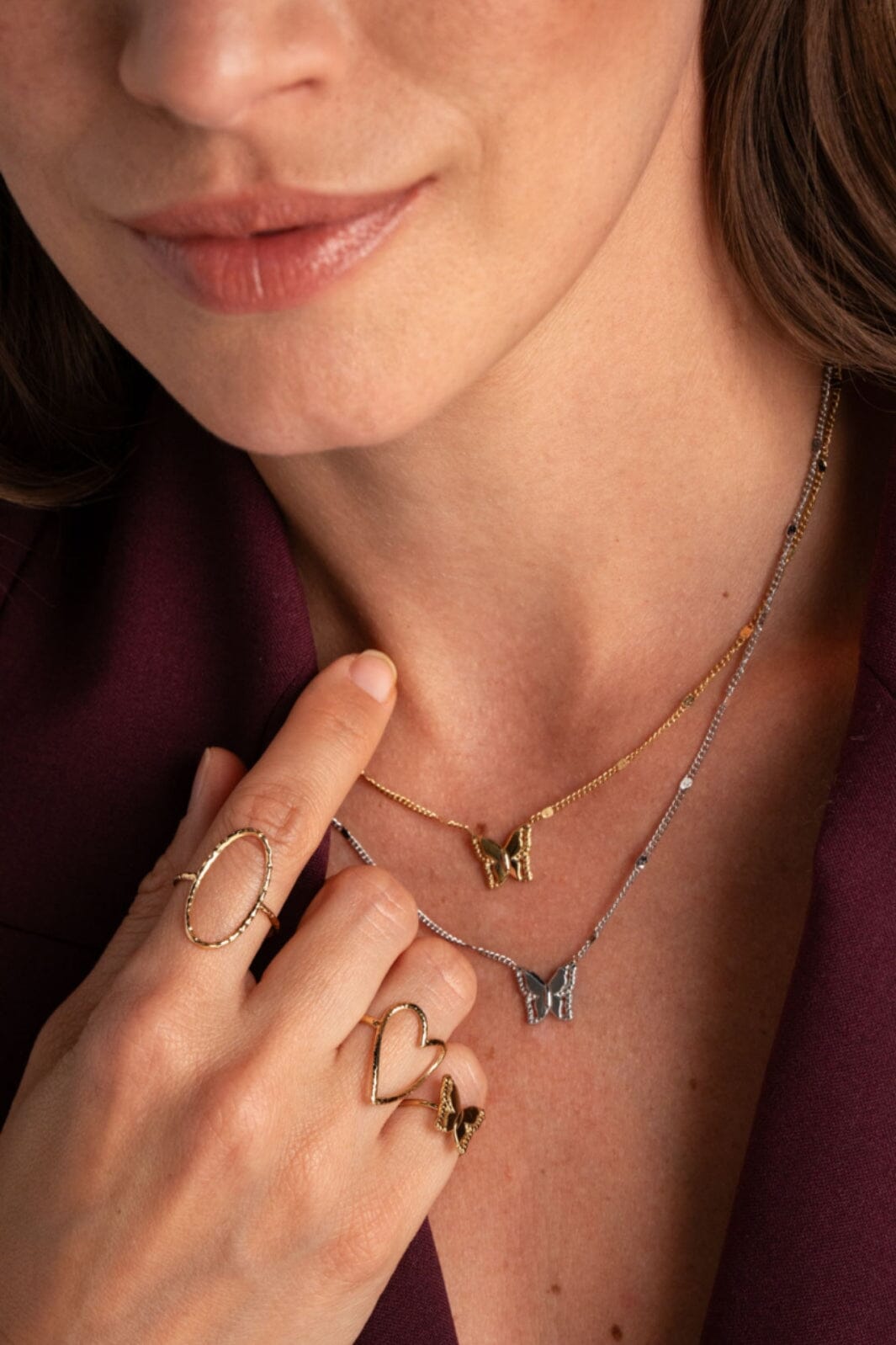 Rostfrittstålsring bestående av ett strukturerat, öppet hjärta. Justerbar, ringen kan dras åt eller vidgas: från storlek 52 till 56. Ringshöjd: 20mm. Garanterat fri från nickel, kadmium och blysalter. Vattenresistent och mörknar inte.