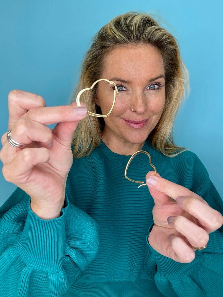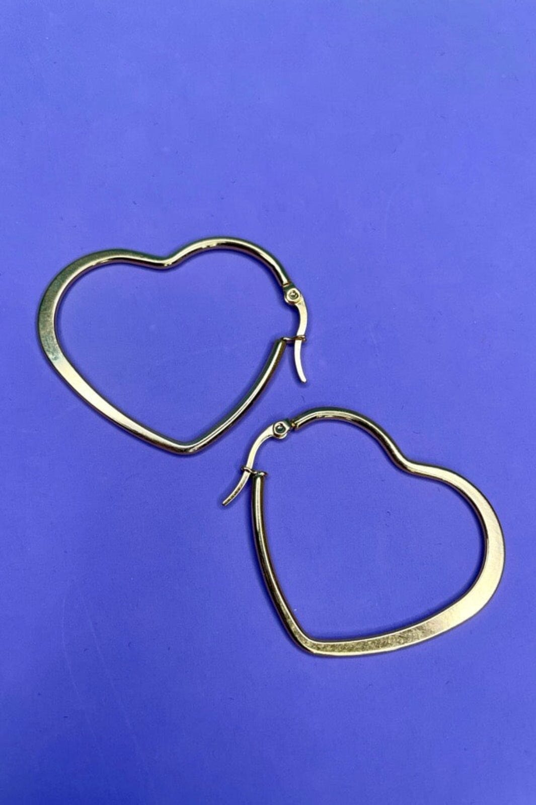 Hjärtförda örhängen från Mellow Moon i förgyllt mässing. Smyckena är nickel- och blyfria, vilket gör dem lämpliga för känslig hud.