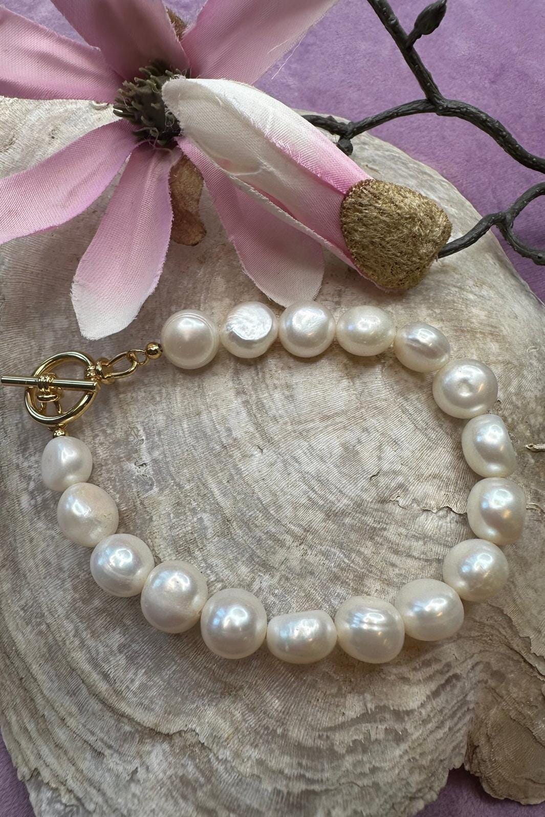 Mellow Moon Mmperlearmbånd m. Forgyldt Perle Färg: Ferskvand