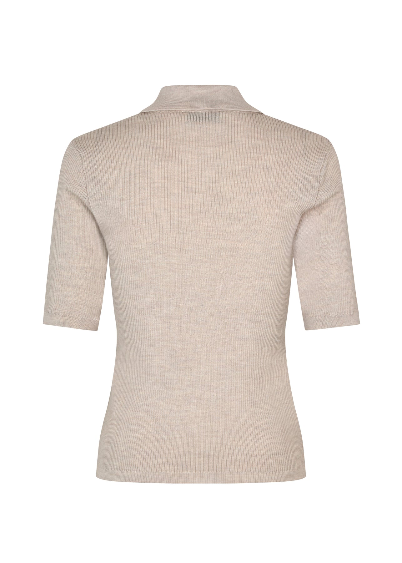 Kortärmad pikétröja från Modström i beige ull. Pikétröjan har en slim fit och en ribbstickad textur.