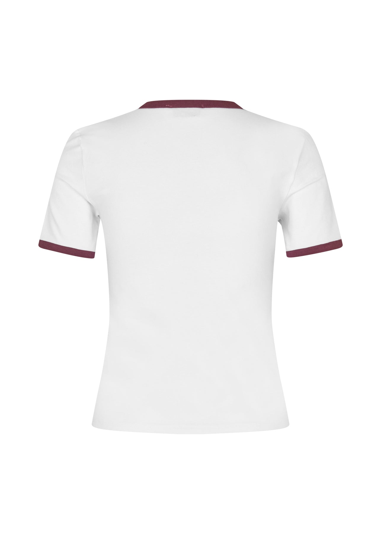 Vit T-shirt från Modström med kontrastkanter på kragen och ärmarna. Logotypen är placerad framtill i en oval märkning.