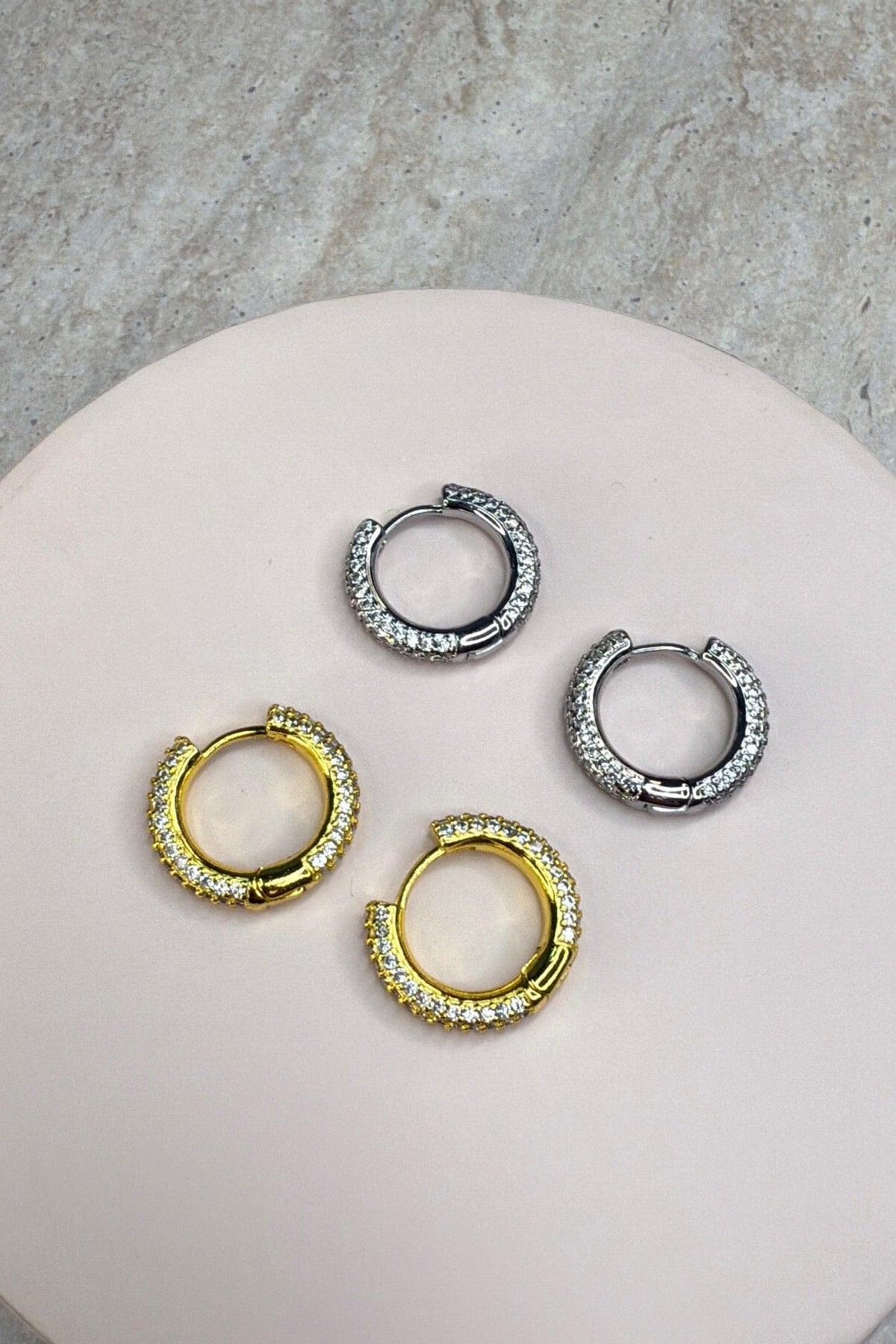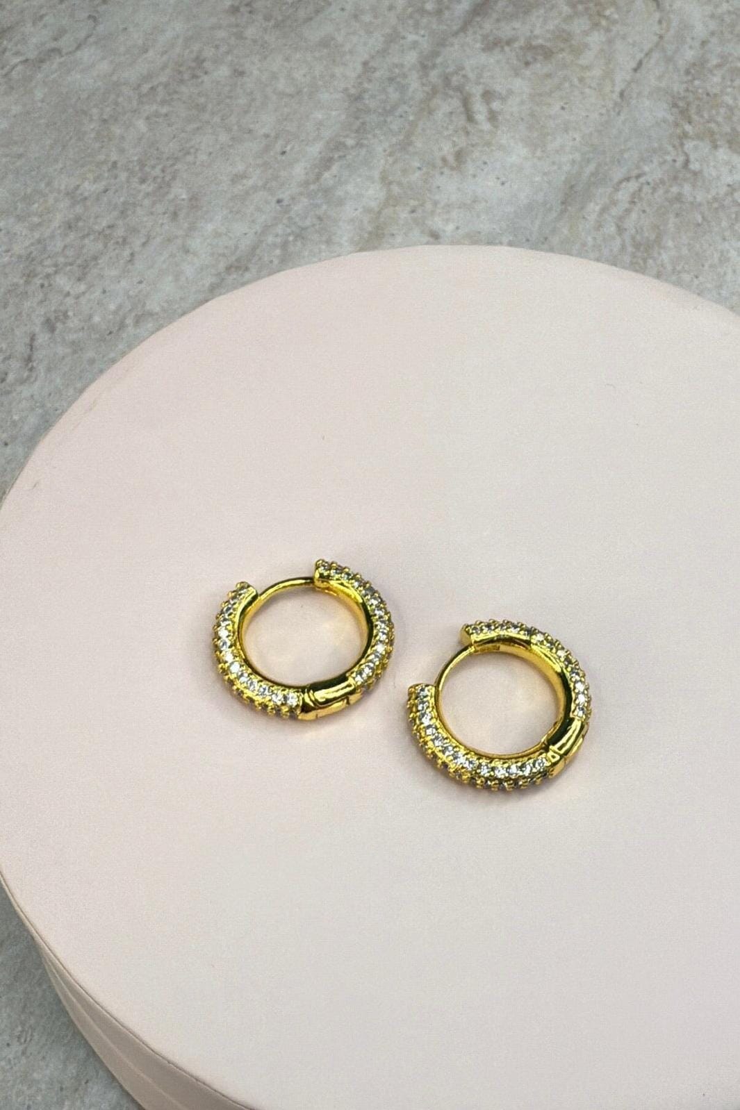 Cirkelformade hoops från Molly&My Jewellery med en guldfärgad yta. Örhängena är utsmyckade med små stenar runt utsidan.