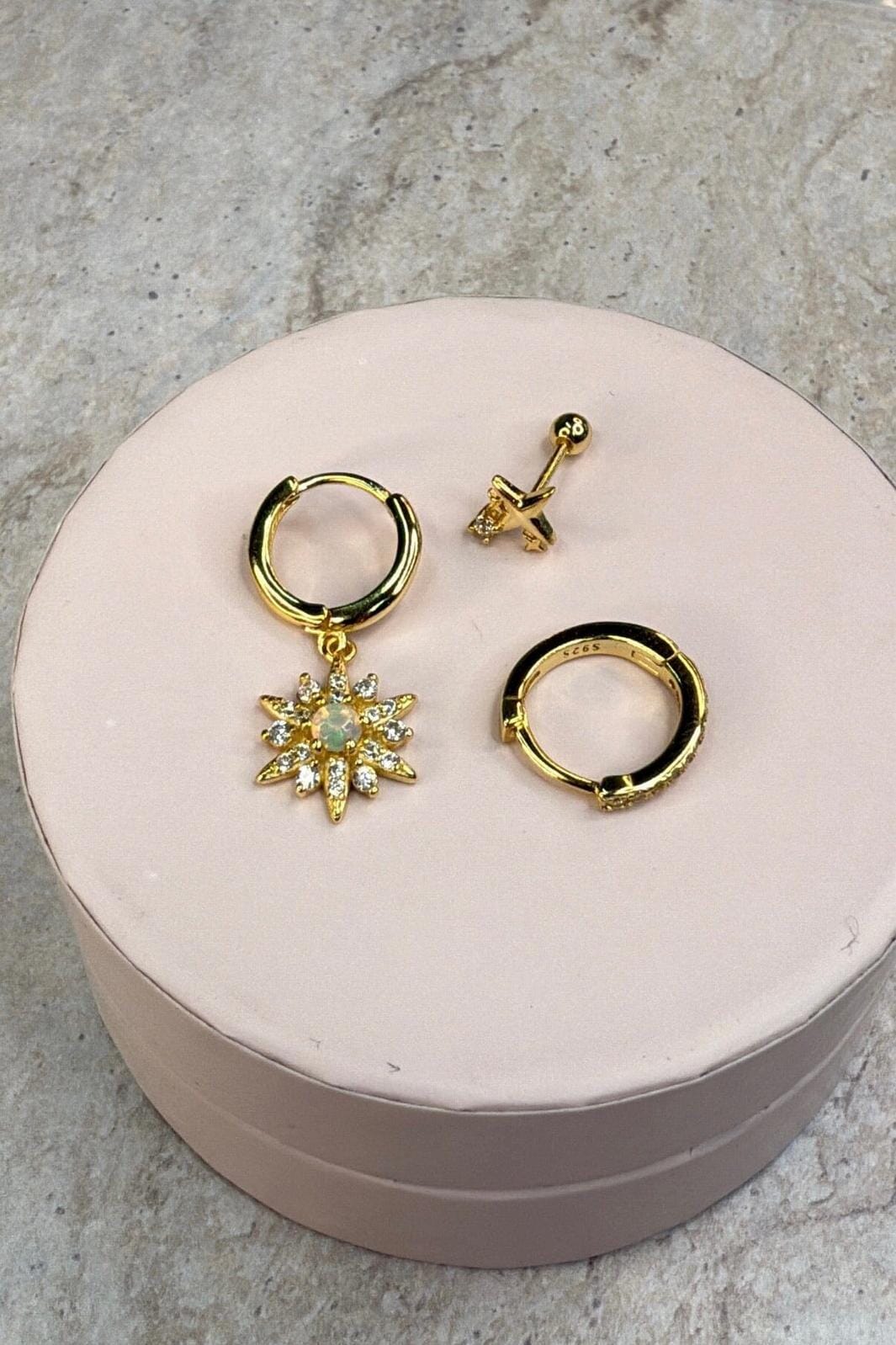Örhängen från Molly&My Jewellery med förgylld finish. Setet innehåller två par med stjärnformade hängen och infattade stenar.
