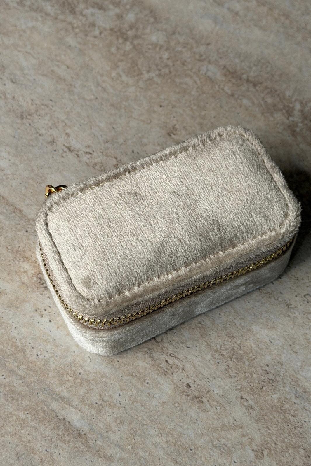 Smyckeskrin från Molly&My Jewellery med en rosa utsida och beige insida. Skrinet har fack för ringar och andra smycken.