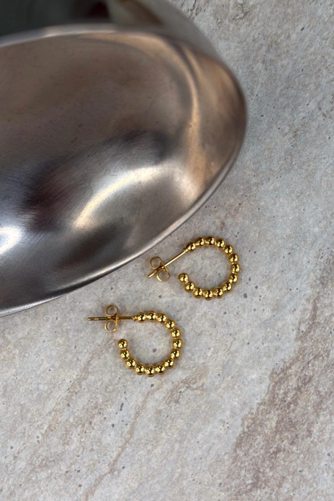 Guldpläterade örhängen från Molly&My Jewellery med en halvcirkelformad creol. Örhängena är formade av små kulor och har en guldfinish.