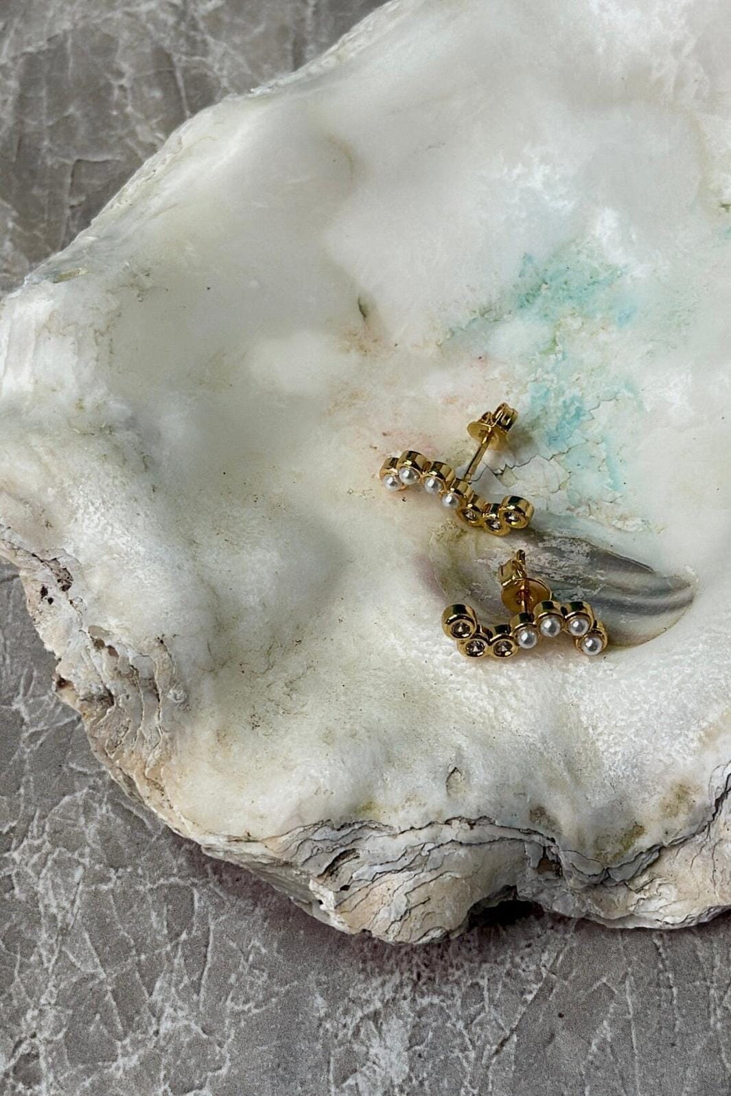 Vågformade örhängen från Molly&My Jewellery x Melanie Due, tillverkade av rostfritt stål med en förgylld finish.