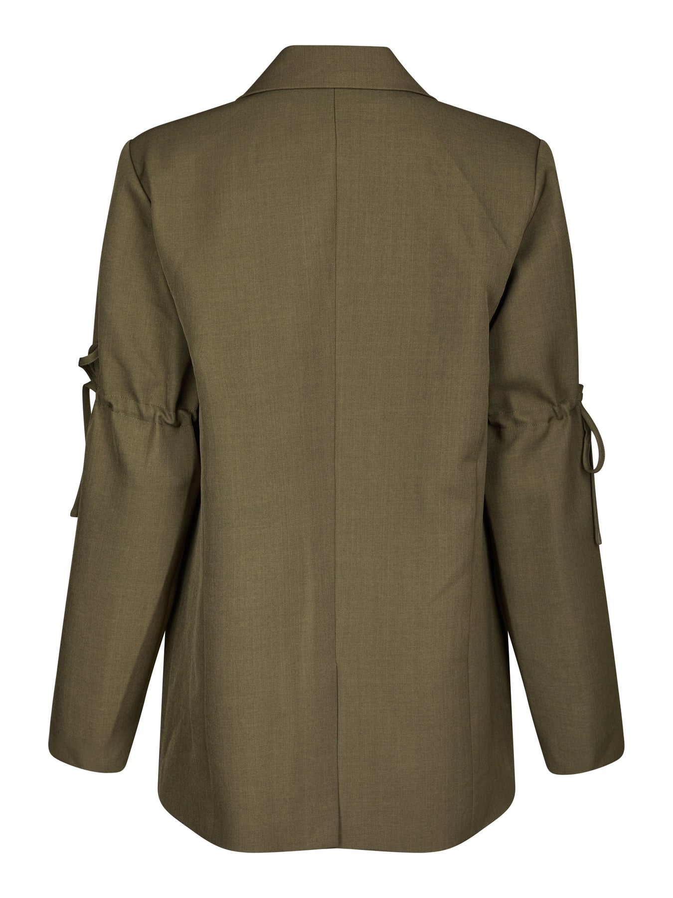 Blazer från Molly&My x Julie Elgaard i khakigrönt. Blazern har snörningsdetaljer på ärmarna, dekorativa knappar framtill och två framfickor med lock.