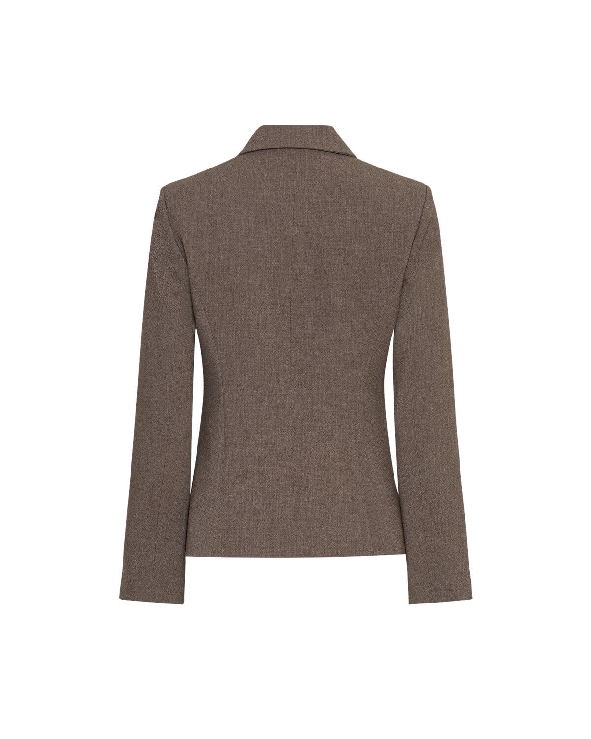Kavaj från Moss Copenhagen i mörkgråmelerad nyans. Kavajen har klassisk krage, långa ärmar och framfickor med lock.