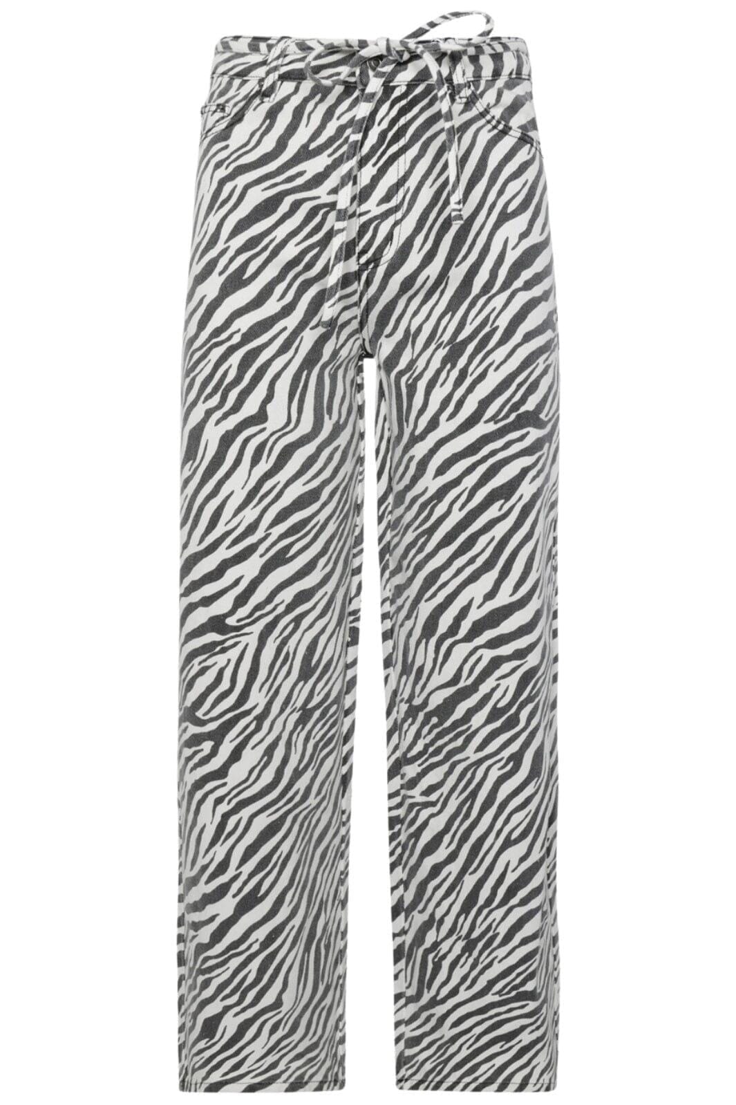 Jeans från Moves By Minimum med zebramönster i svart och vitt. Byxorna har en snördetalj i midjan och ankellängd med regular fit.