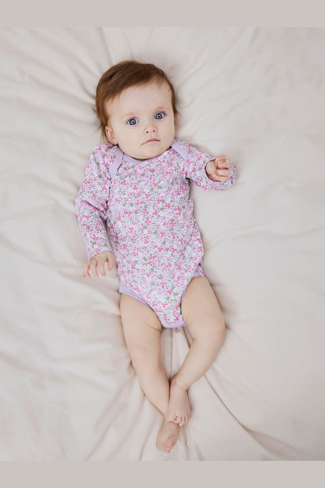 Body från Name It i ljuslila med småblommigt tryck. Tillverkad av en blandning av ekologisk och vanlig bomull.