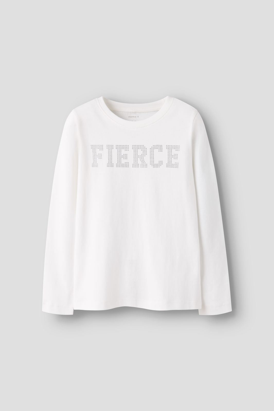 Långärmad topp från Name It i en vit nyans. Toppen är gjord av 100 % ekologisk bomull och har ett glittertryck på framsidan.