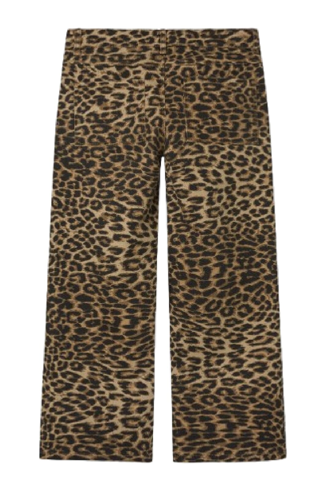 Det genomgående leopardtrycket i twill-vävt tyg ger byxorna ett särskilt uttryck. Trycket är utfört i beige och bruna nyanser.
