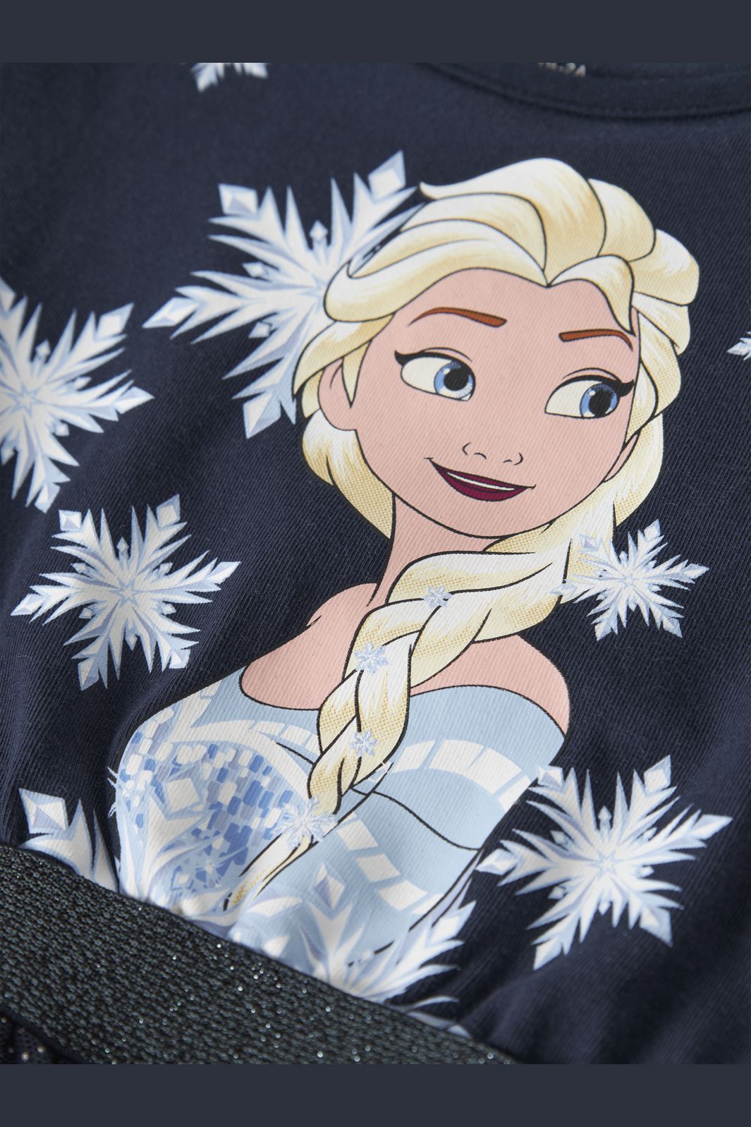 Mörkblå klänning från Name It med tyllkjol. Överdelen har ett snöflingetryck och kjolen har glittrande paljetter och en elastisk midja.