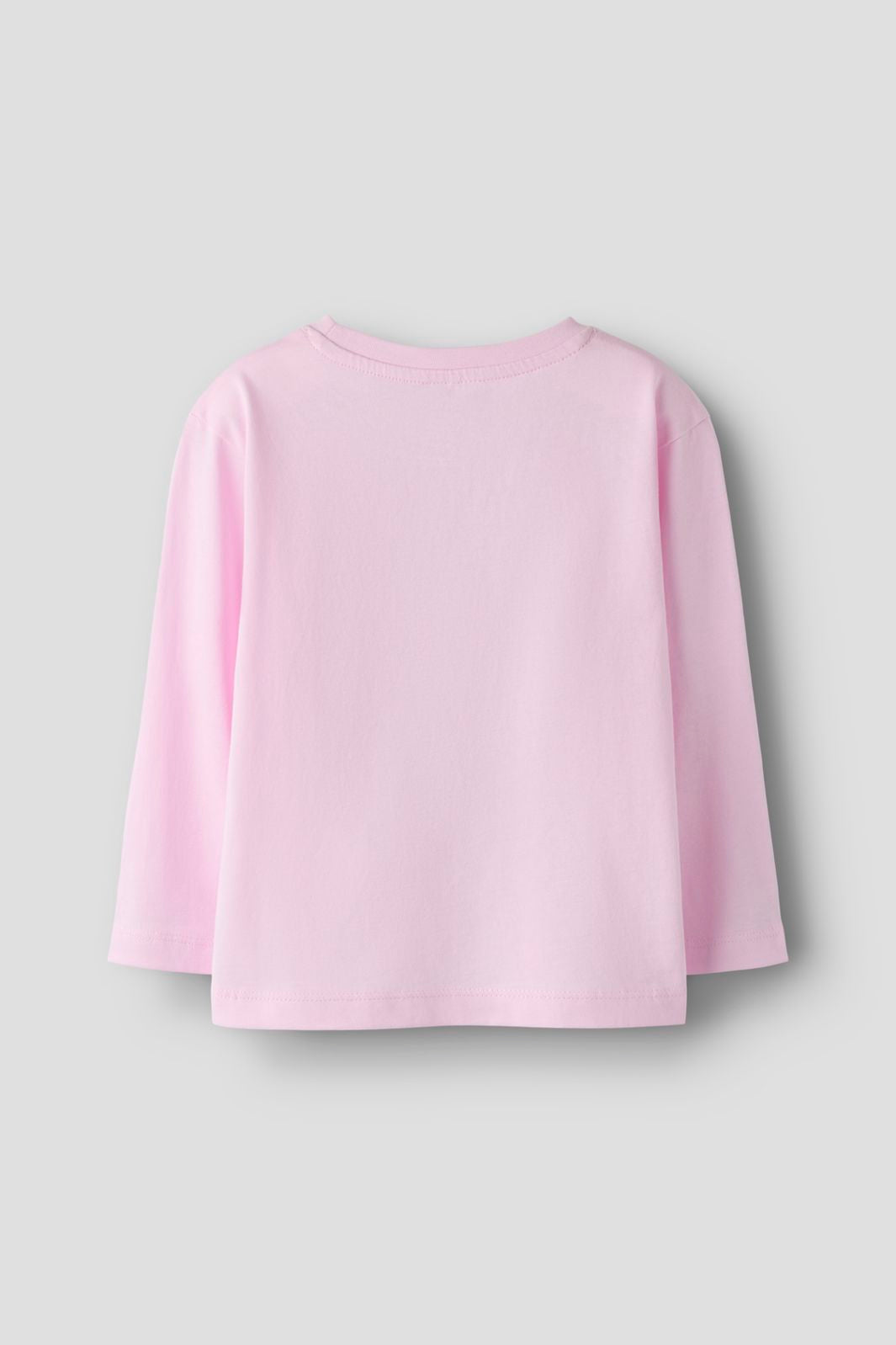 Rosa långärmad topp från Name It med fototryck av en pudelhund med solglasögon och en strandväska. Toppen har rund halsringning och regular fit.