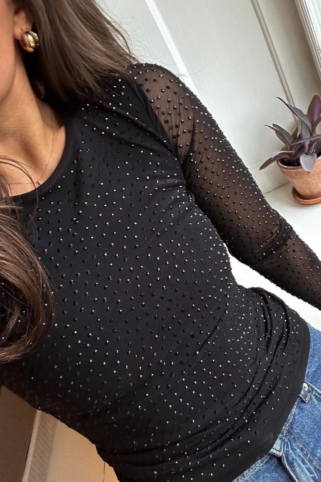 Neo Noir Basira Stone Mesh Blouse Färg: Black