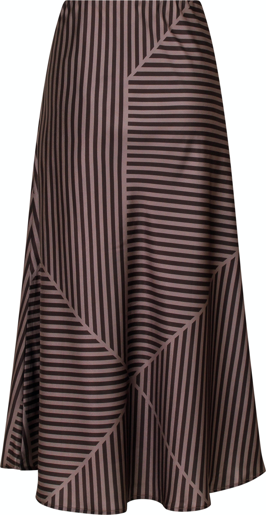 Mörkbrun kjol från Neo Noir med diagonala och horisontella ränder. Kjolen har knälängd och elastisk midja.