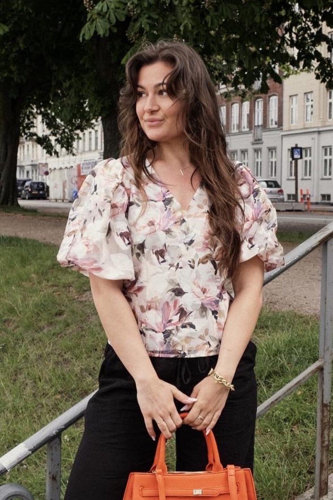 Neo Noir Camia Brocade Print Blouse Färg: Creme