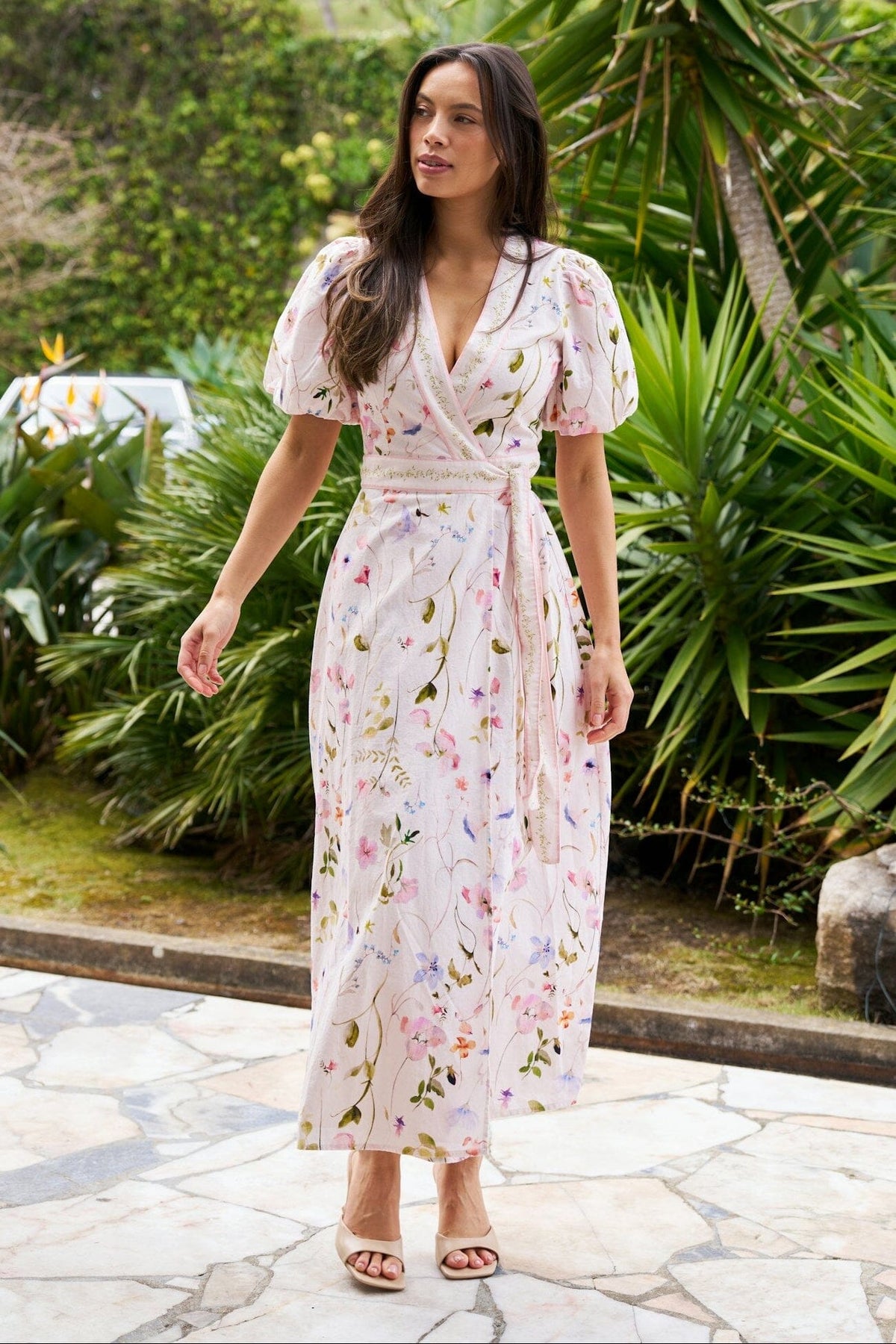- Modellen är 176 cm lång och bär storlek 36