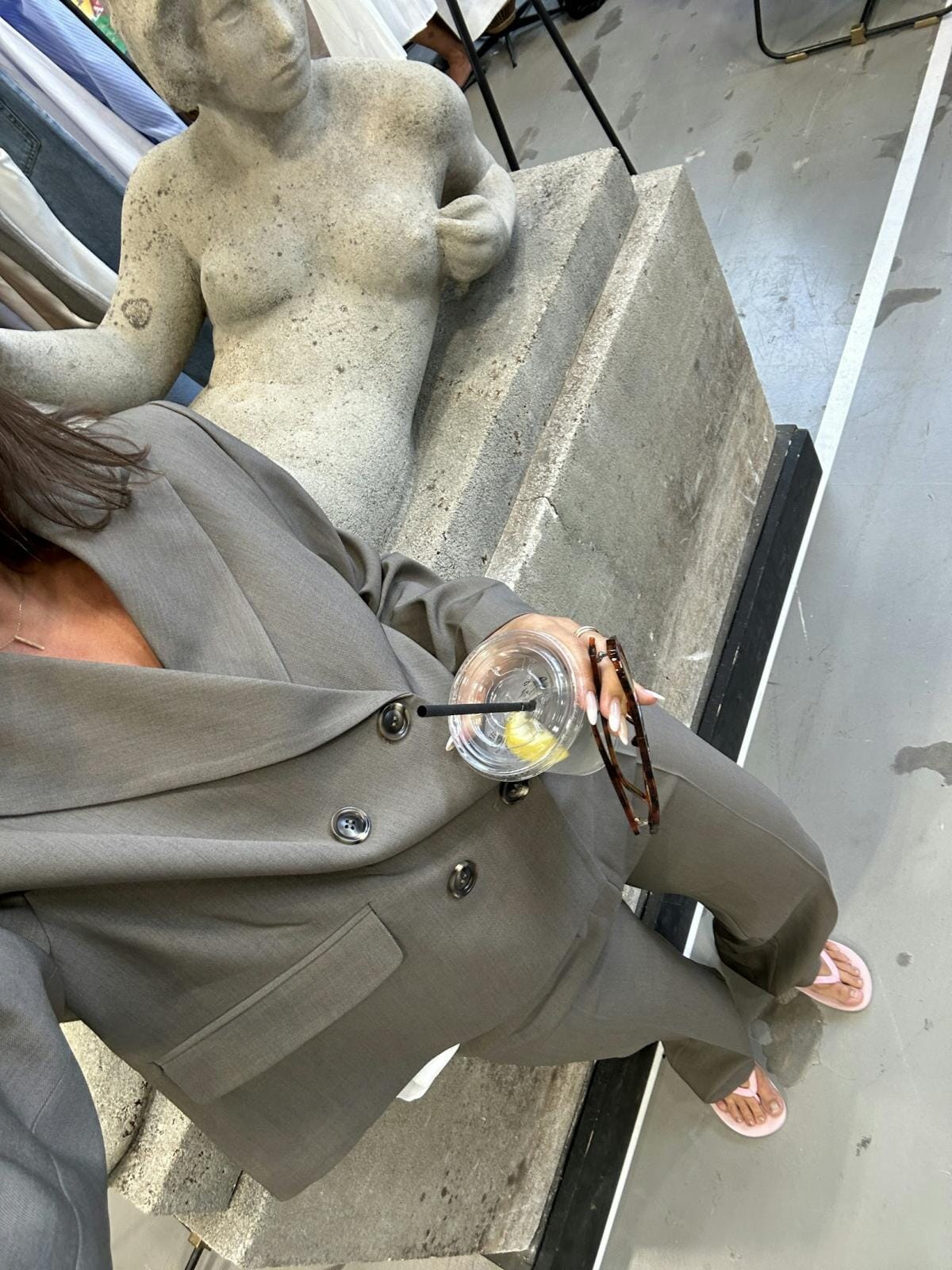 Khakifärgad blazer från Neo Noir med dubbelknäppning. En strukturerad blazer med V-ringning och långa ärmar som kan stylas för både vardag och fest.