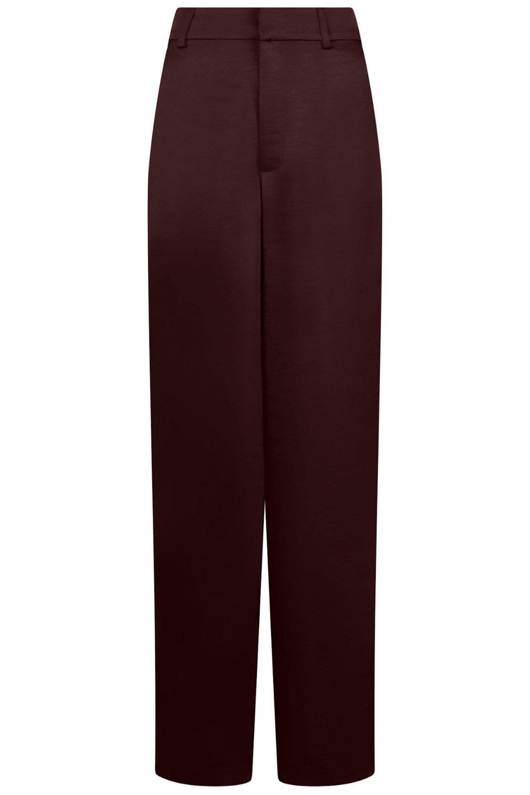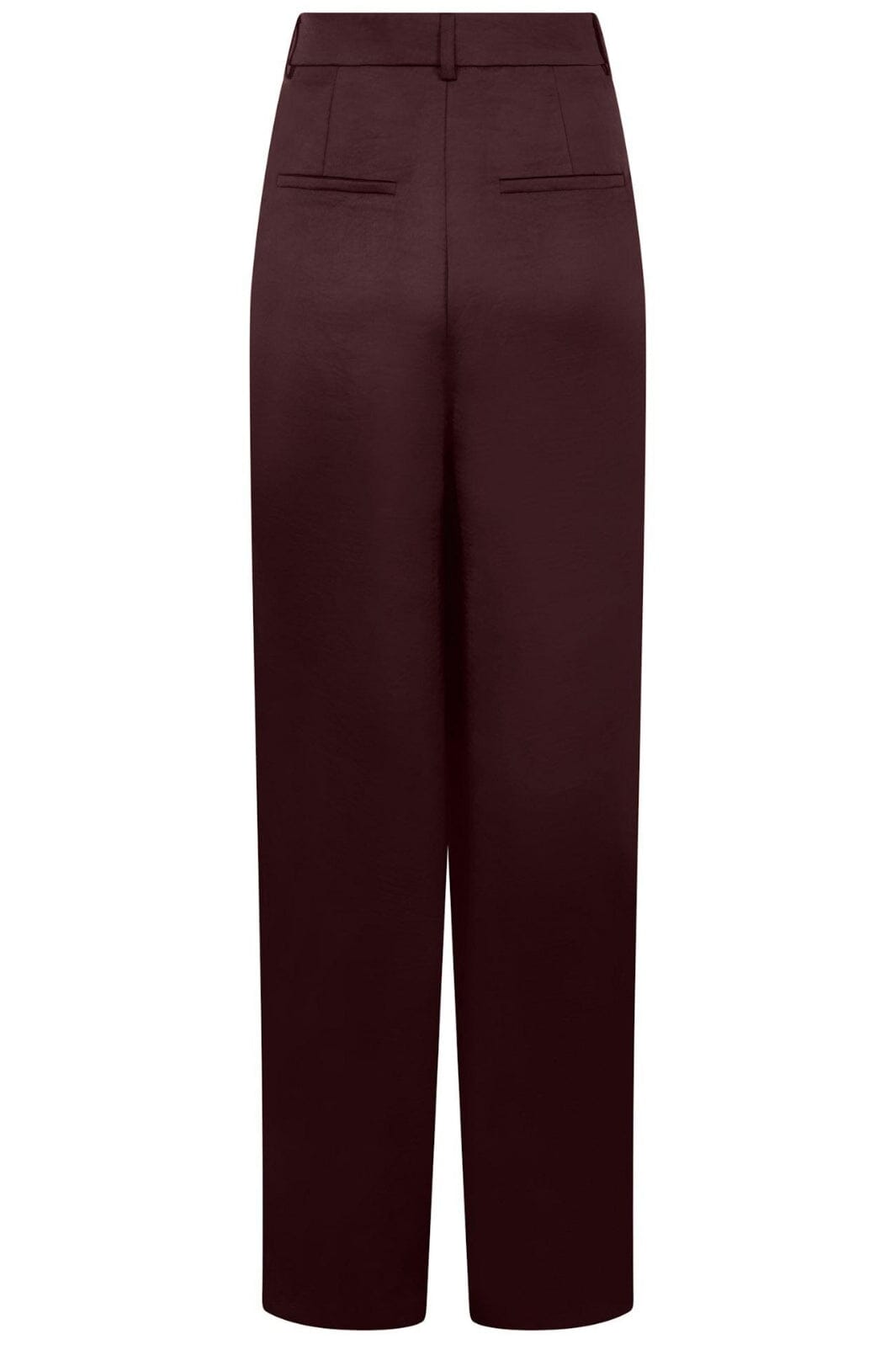 Byxor från Neo Noir i djup bordeauxfärg. Tillverkade av heavy sateen med en rak silhuett och golvlängd. Byxorna har synliga fickor och dekorativa sömmar.