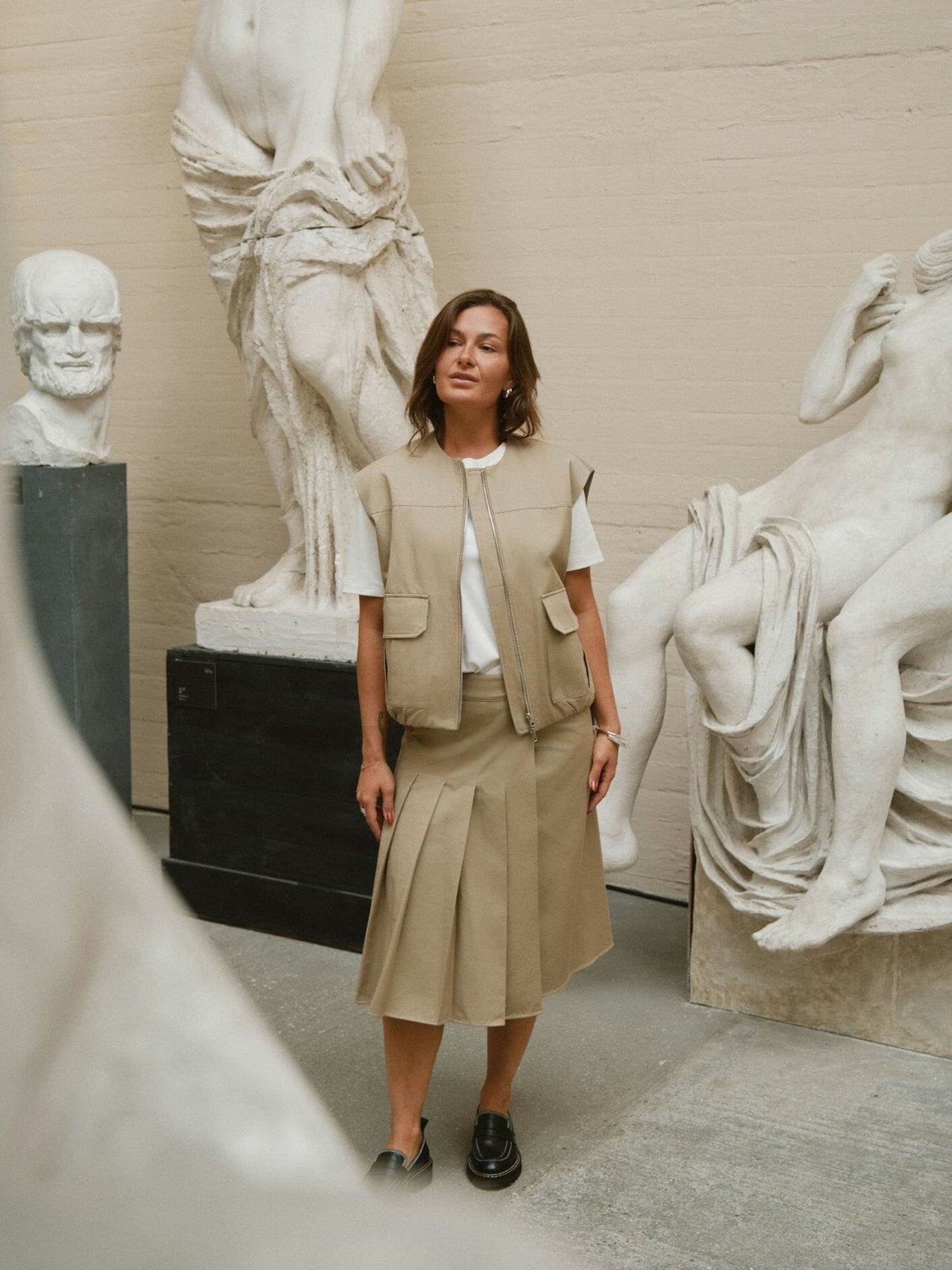 Ärmlös väst från Neo Noir i taupe. Den har en oversize passform med balloneffekt och stora cargo-fickor på framsidan. Dragkedjelåsning och rund halsringning.