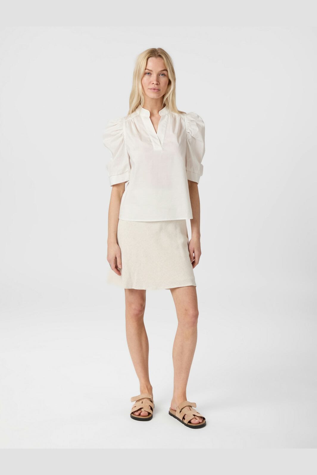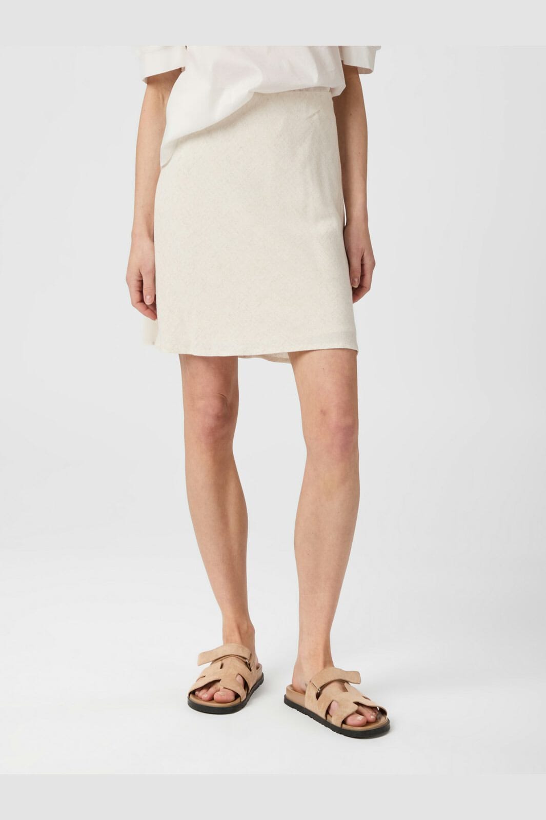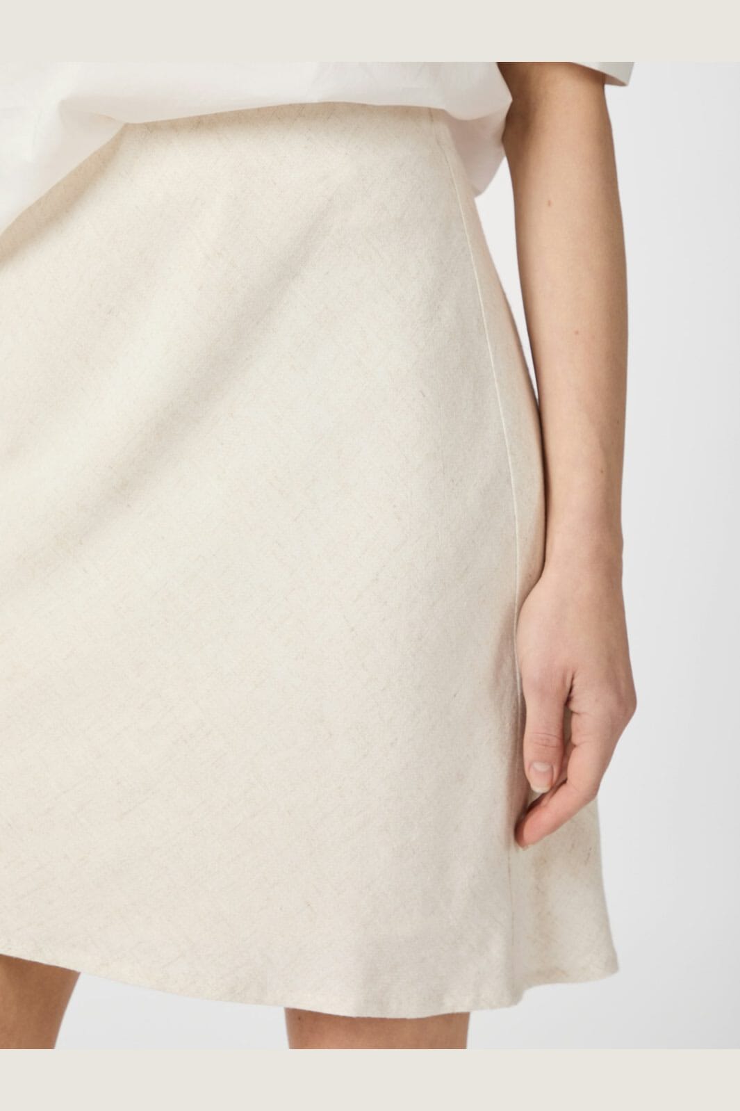 Kort kjol från Neo Noir i naturfärgad linneblandning. A-formad skärning med lös passform och rund kant nertill.