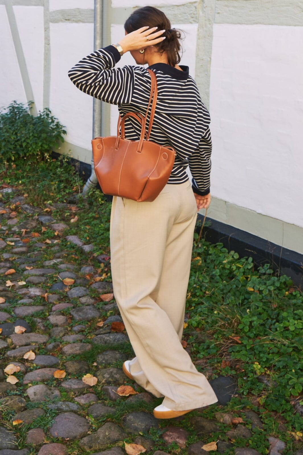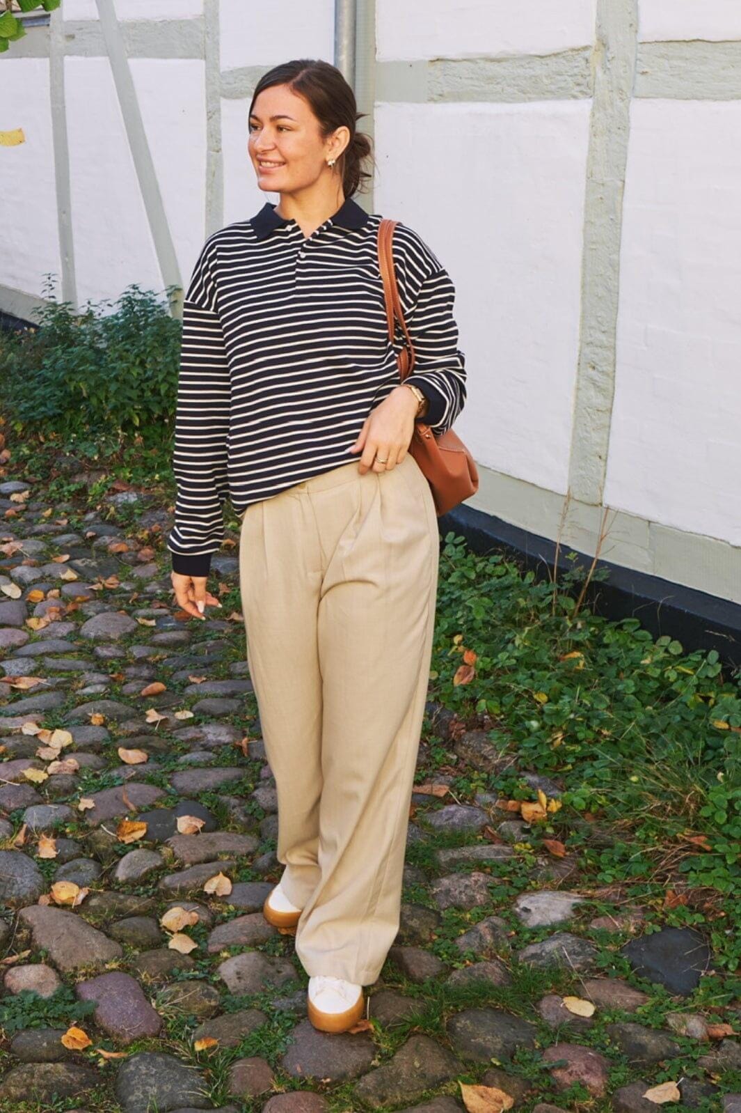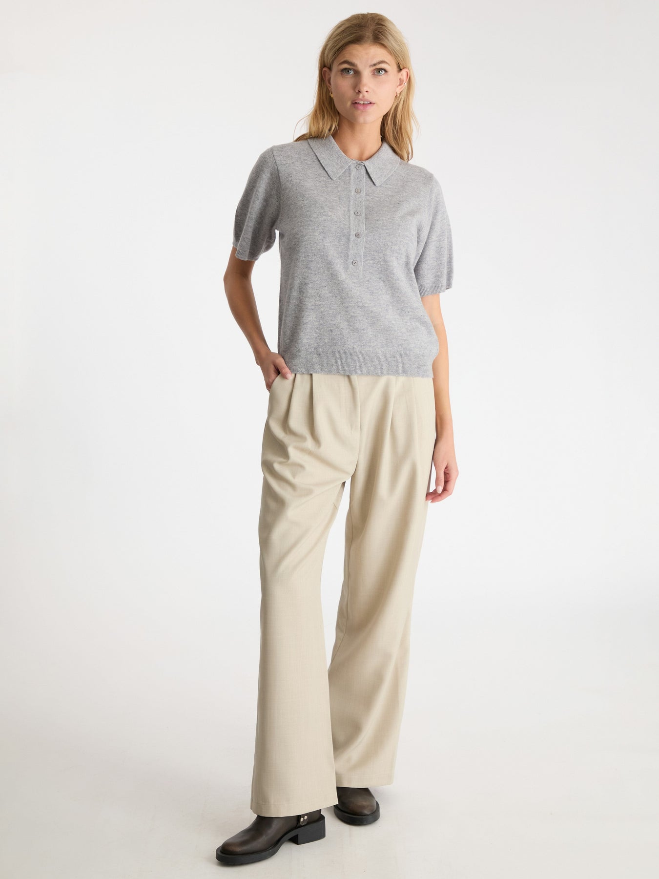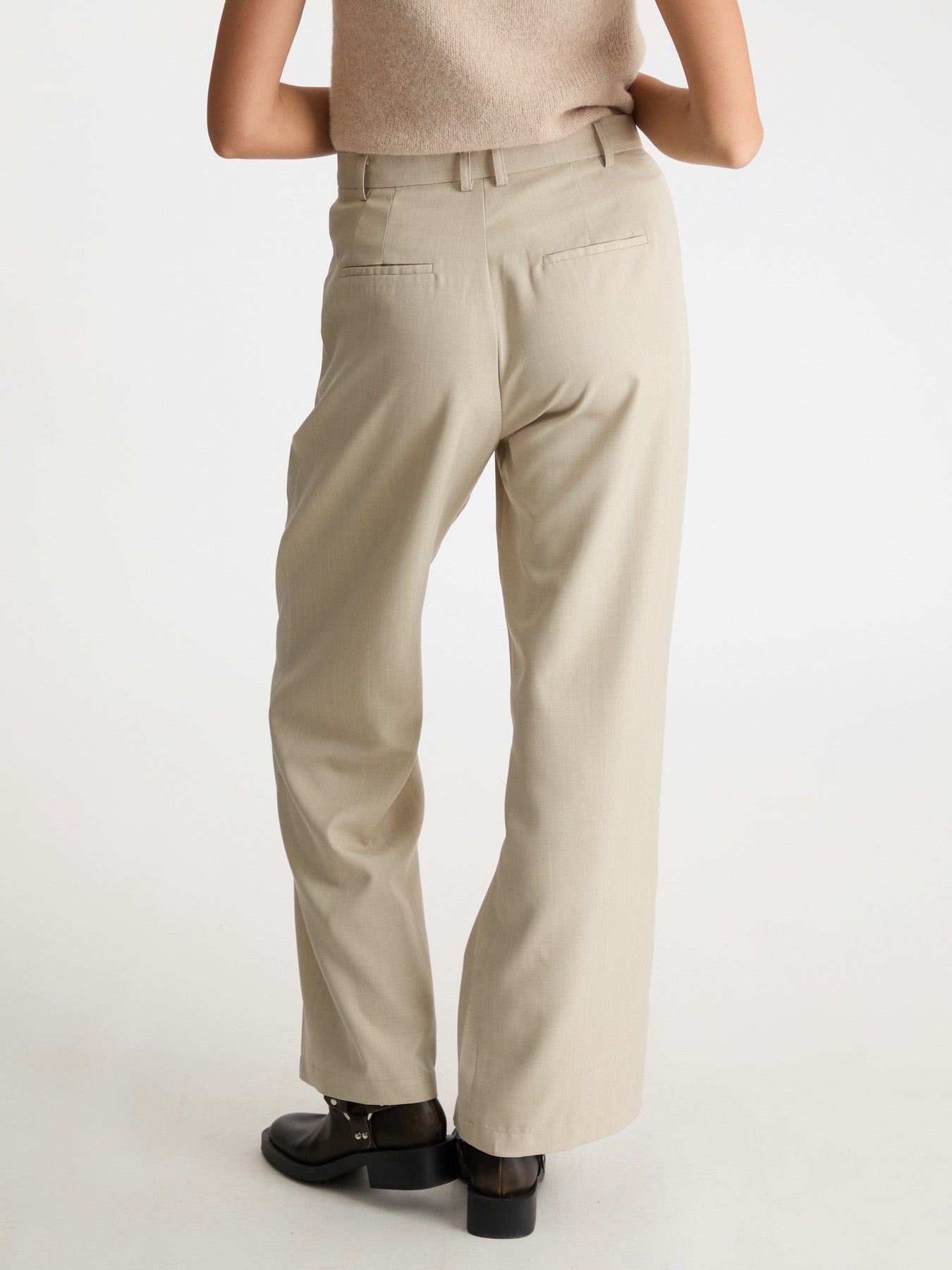 Sandfärgade byxor från Neo Noir med vida ben och veck vid midjan. Byxorna har en lös passform och hög midja som ger god rörelsefrihet.