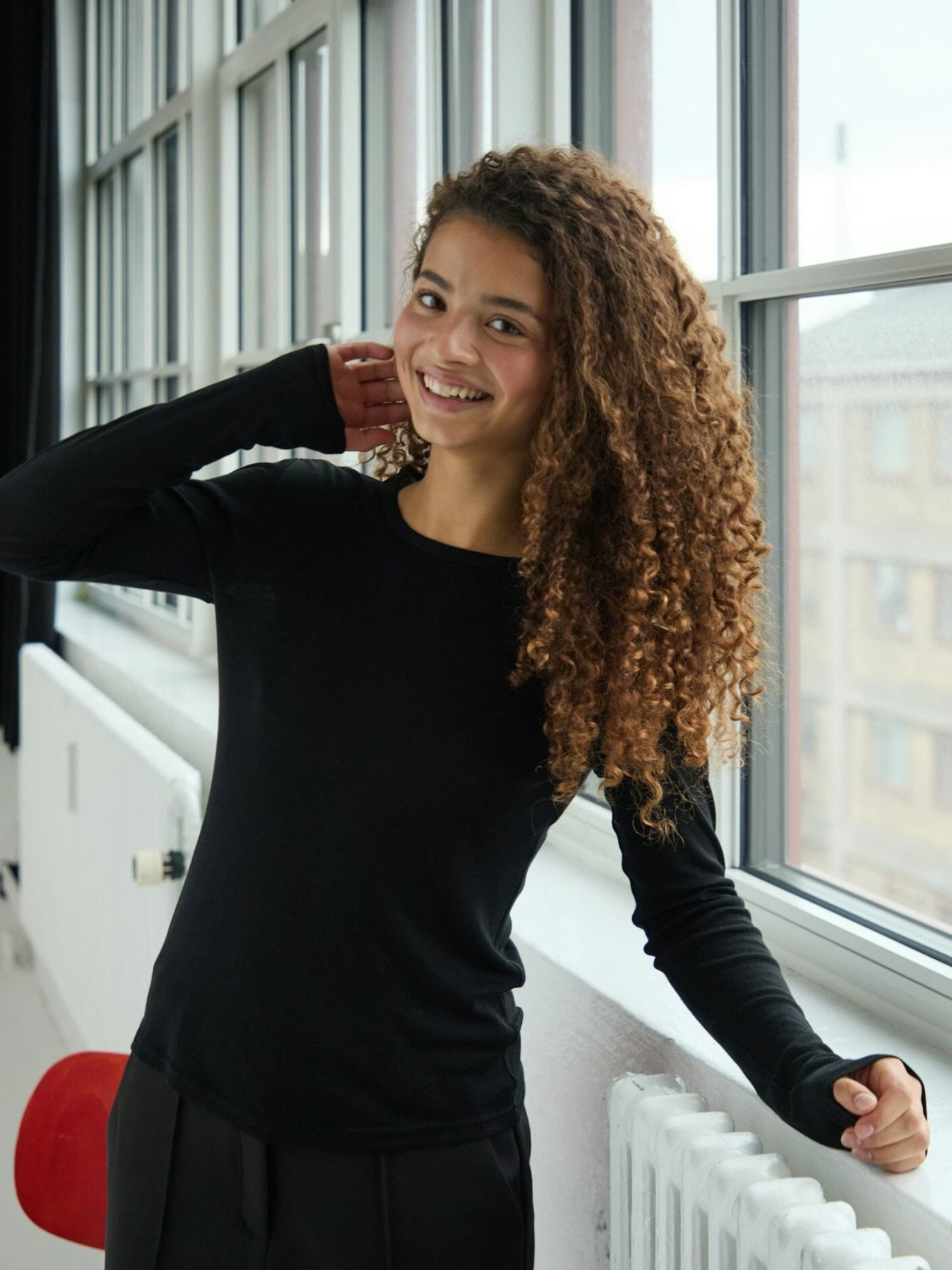 Svart ribbstickad tröja från Neo Noir i en mjuk blandning av lyocell och ull. Tröjan har en åtsittande passform med långa ärmar och rund halsringning.