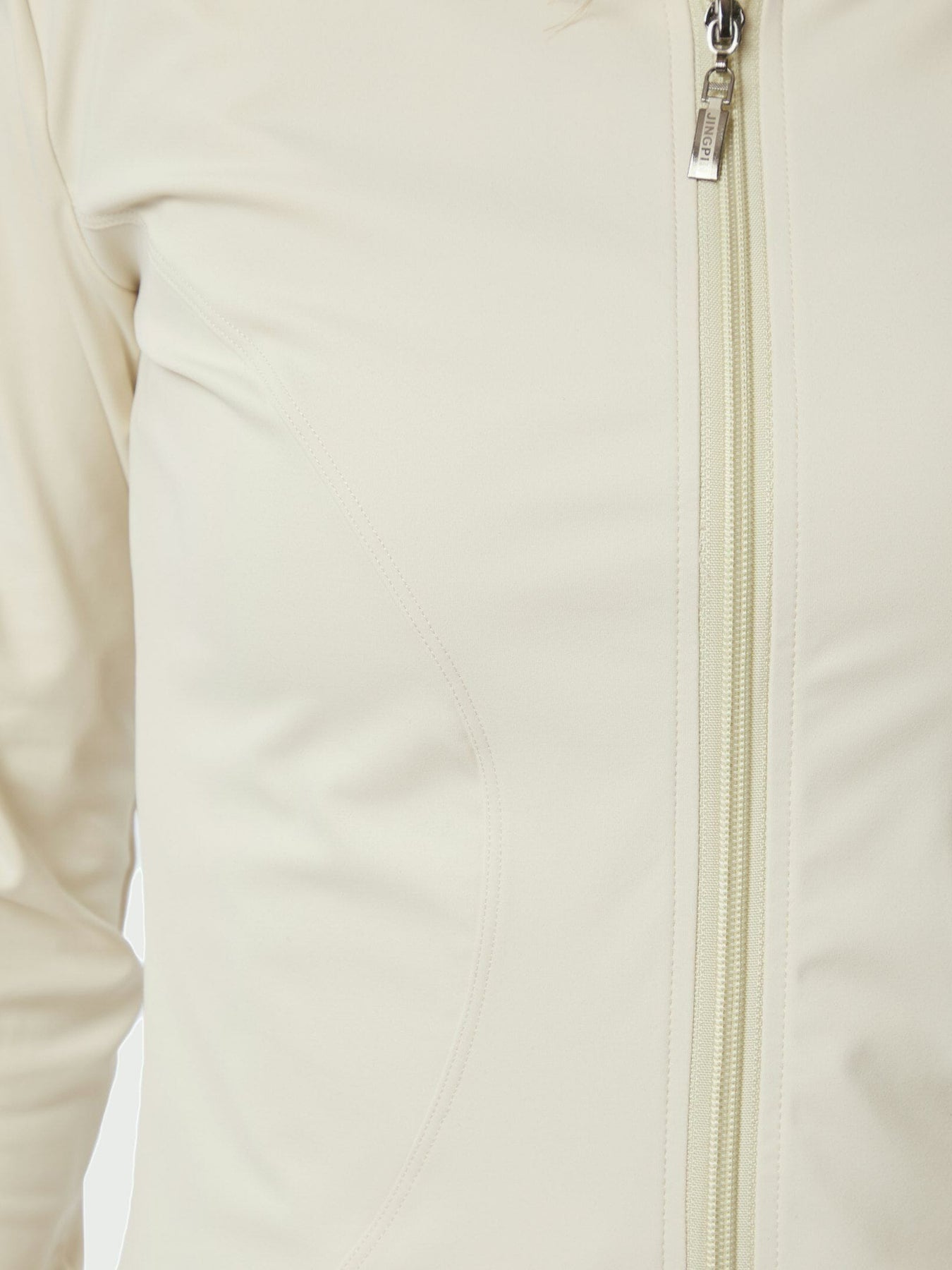 Vit blus från Neo Noir med dragkedja framtill och hög krage. Blusen har en sportig stil med figurnära passform och långa ärmar.