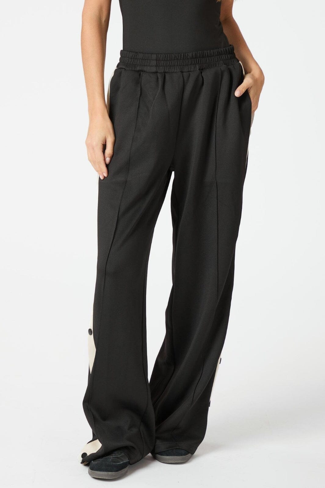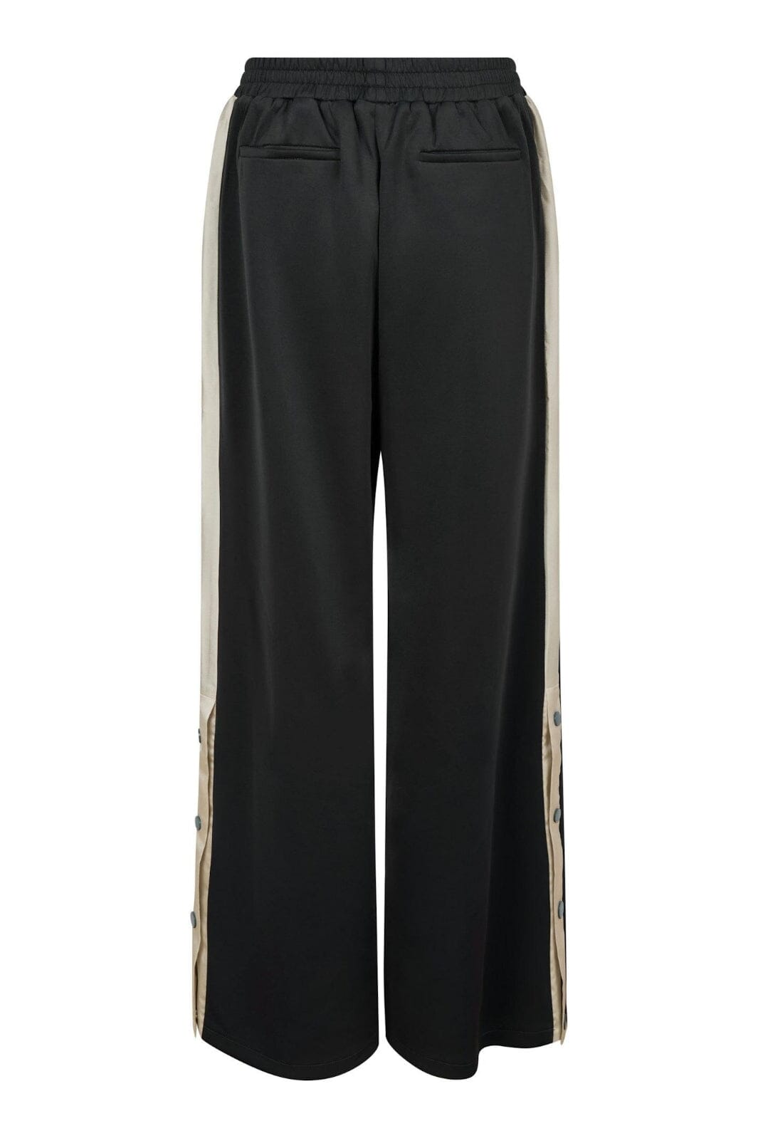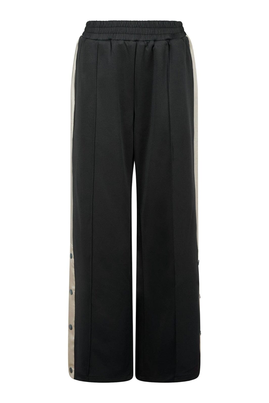 Svarta tracksuitbyxor från Neo Noir i golvlängd. Byxorna har en lös passform med randdetaljer längs benen och knappar vid slitsen.