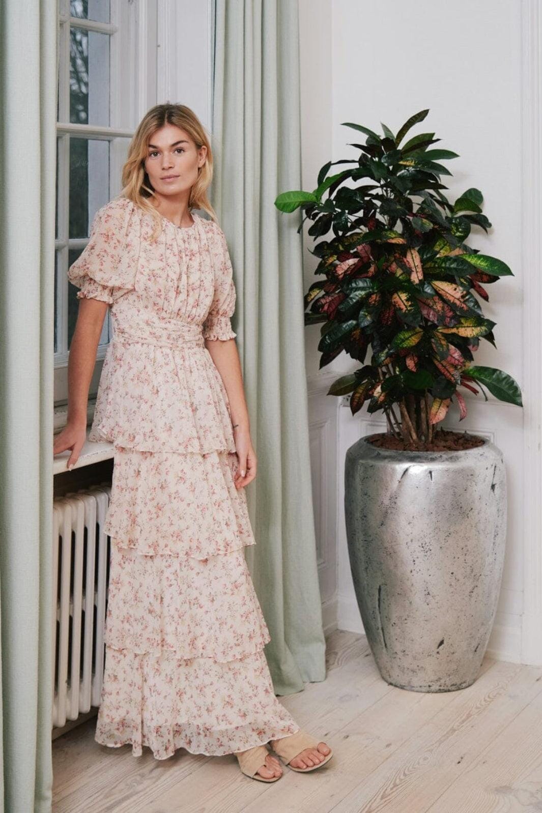 Klänning från Neo Noir i creme med blommigt tryck. Klänningen är gjord av polyester och har en ankellång längd med flera lager i nederdelen.