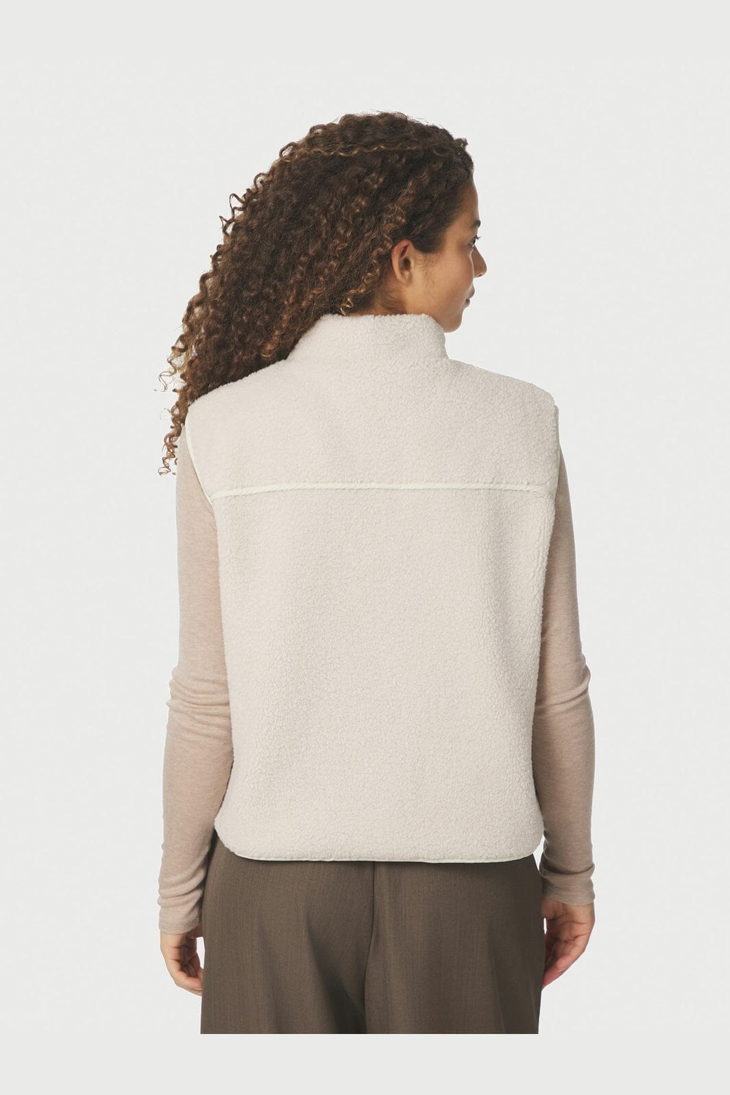 Ärmlös väst från Neo Noir i mjuk teddy-kvalitet och ljus elfenbensfärg. Väst som passar för avslappnade och hemtrevliga miljöer med två stora framfickor.