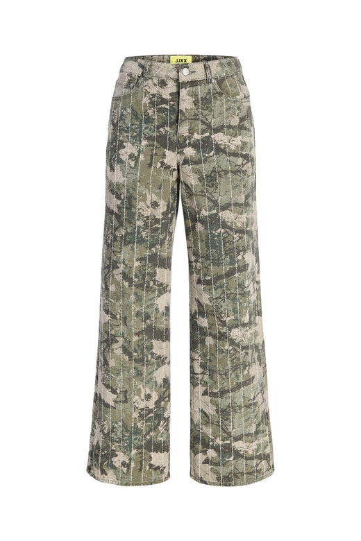 Byxor från Neo Noir i antracit med herringbone-mönster. De har en lös passform med vida ben och sydda pressveck, som ger byxorna deras karaktäristiska snitt.