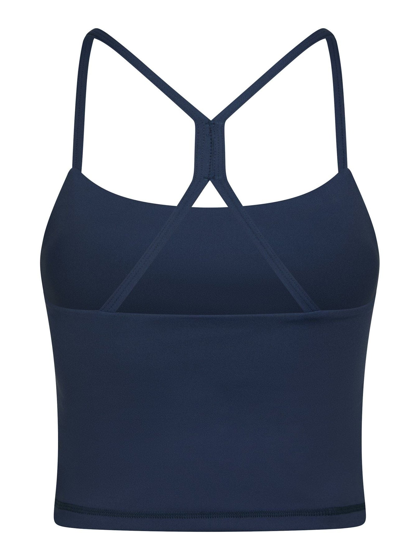 Mörkblå topp från Neo Noir med tunna axelband och racerback-design. Materialet är 75% nylon och 25% elastan, vilket ger toppen en stretchig passform.