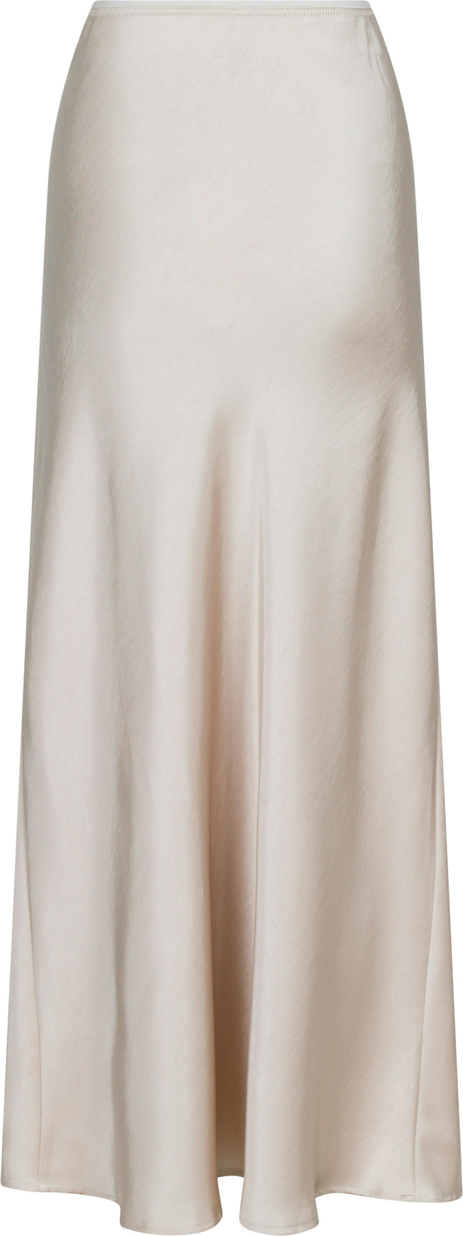 Lång kjol från Neo Noir i tung satin. Kjolen har en champagnefärg med en blank yta. Den är skuren i sned och har inre elastik i midjan.